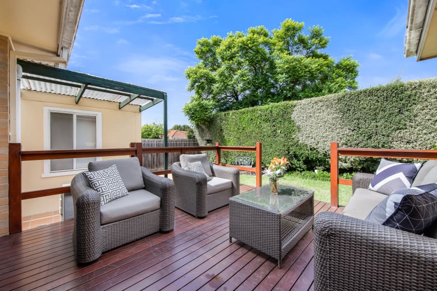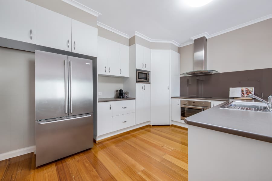 Timber floors and beautiful natural light add an inviting tone to dual-zoned living, with an L-shape lounge/dining domain preceding an updated skylit kitchen with adjoining family/meals area and outdoors to a private entertaining deck.