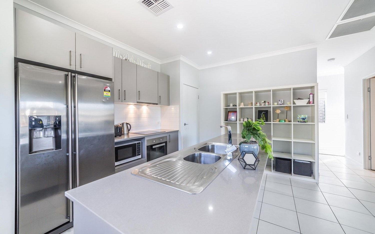 # Stone bench tops to kitchen, plus tile splashback and double sink