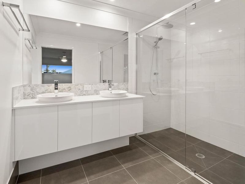 # Private Ensuite with HIS & HERS sink basins and STORAGE to vanity. LARGE shower cavity