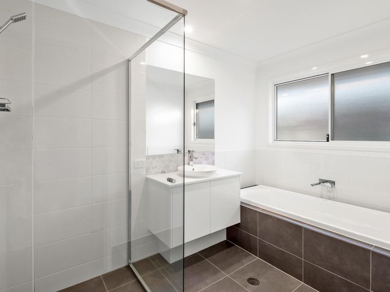# Main Bathroom with single shower cavity and SEPARATE BATHTUB. STORAGE to vanity.