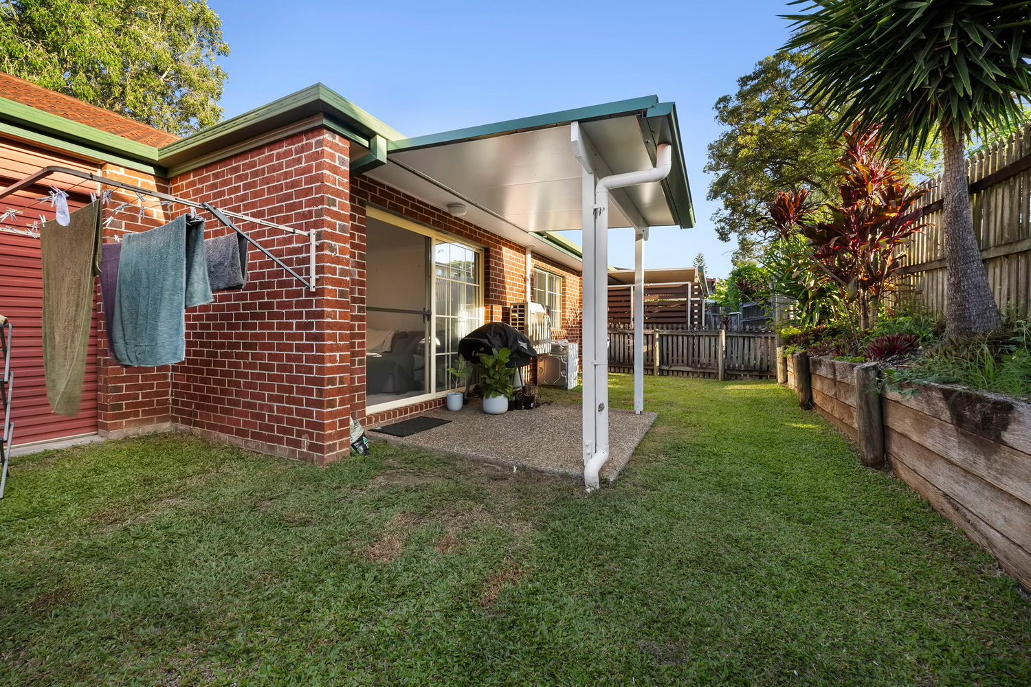# Fully fenced backyard with patio