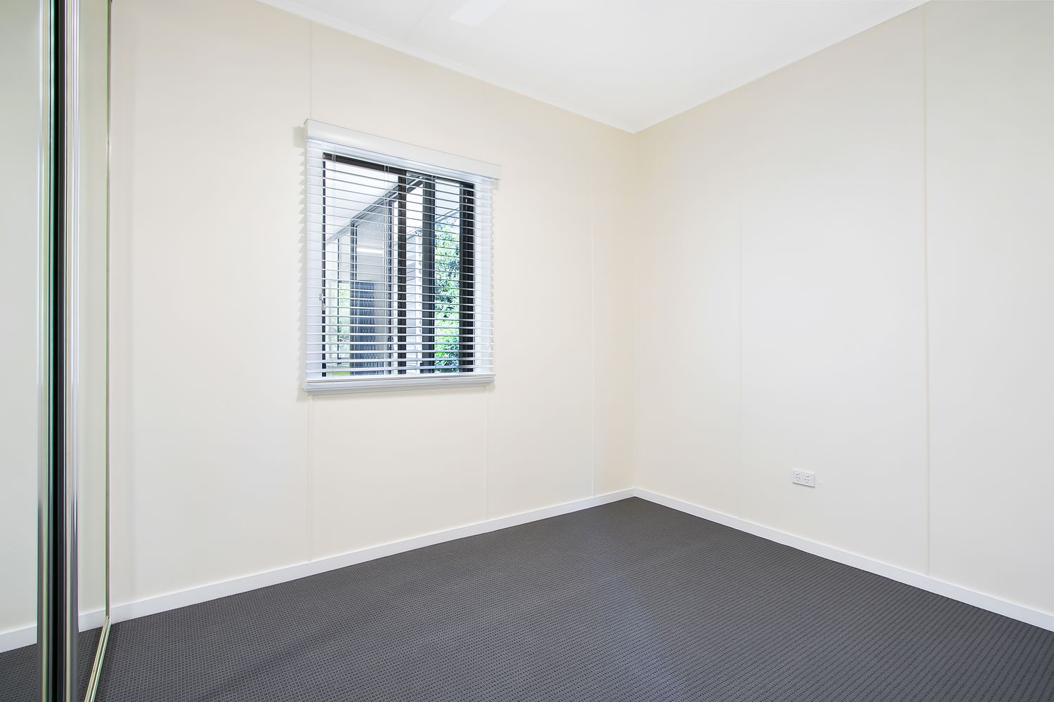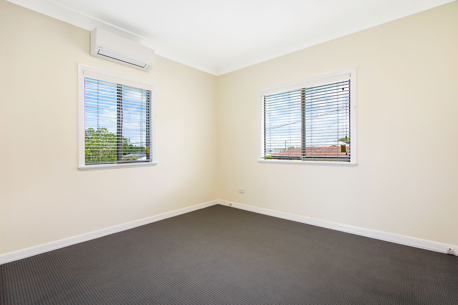 # Main bedroom with freshly painted walls, brand new carpets, WINDOW COVERINGS, AIR CONDITIONING, CEILING FAN and BUILT IN WARDROBE.