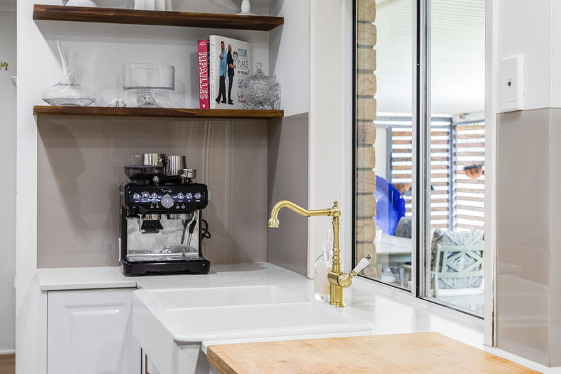 # Modern open-plan kitchen with quality appliances, Intergrated dishwasher, plumbing for fridge, Farmhouse sink and ample storage