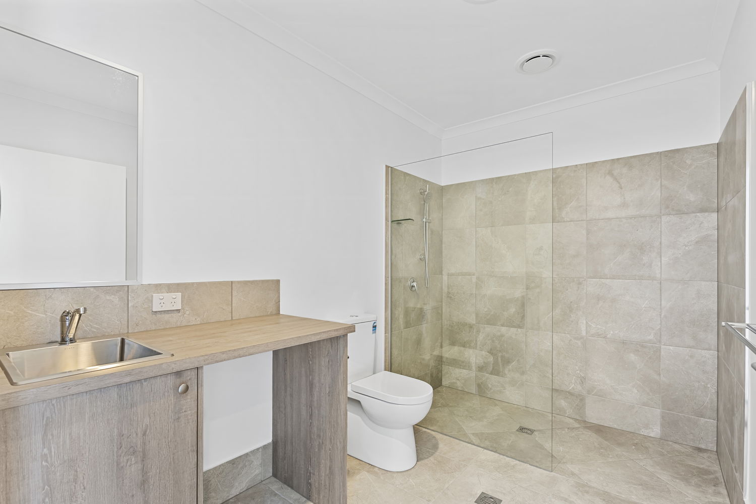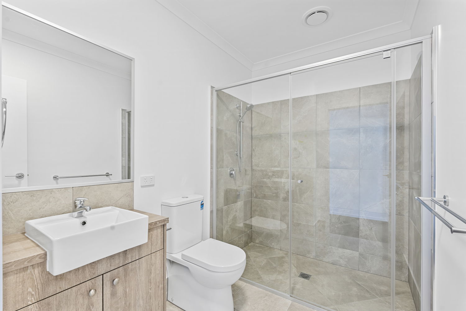 # Downstairs bathroom with ample storage to vanity and large shower cavity. Combined with internal laundry.