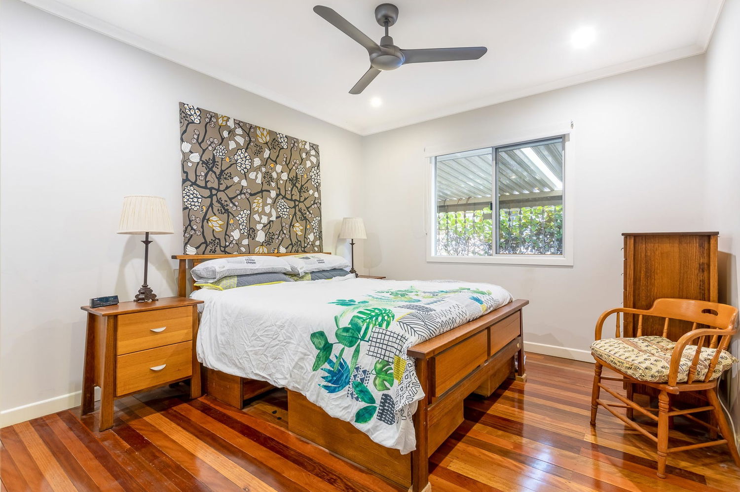 # Master bedroom with walk in wardrobe, ceiling fan, air-conditioning and private ensuite