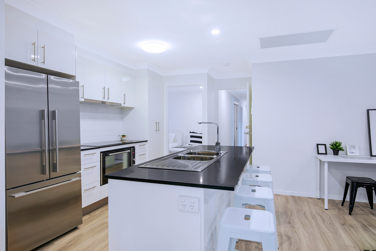 # Large kitchens complete with quality stainless steel appliances inclusive of dishwasher, electric stove, oven & rangehood. Ample storage with pantry and island bench doubling as breakfast bar.