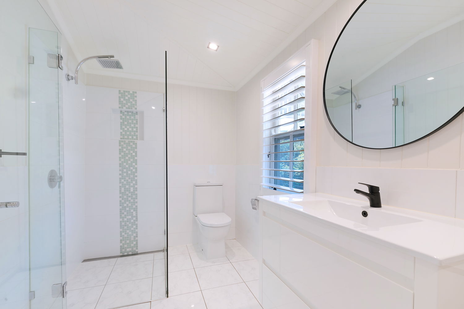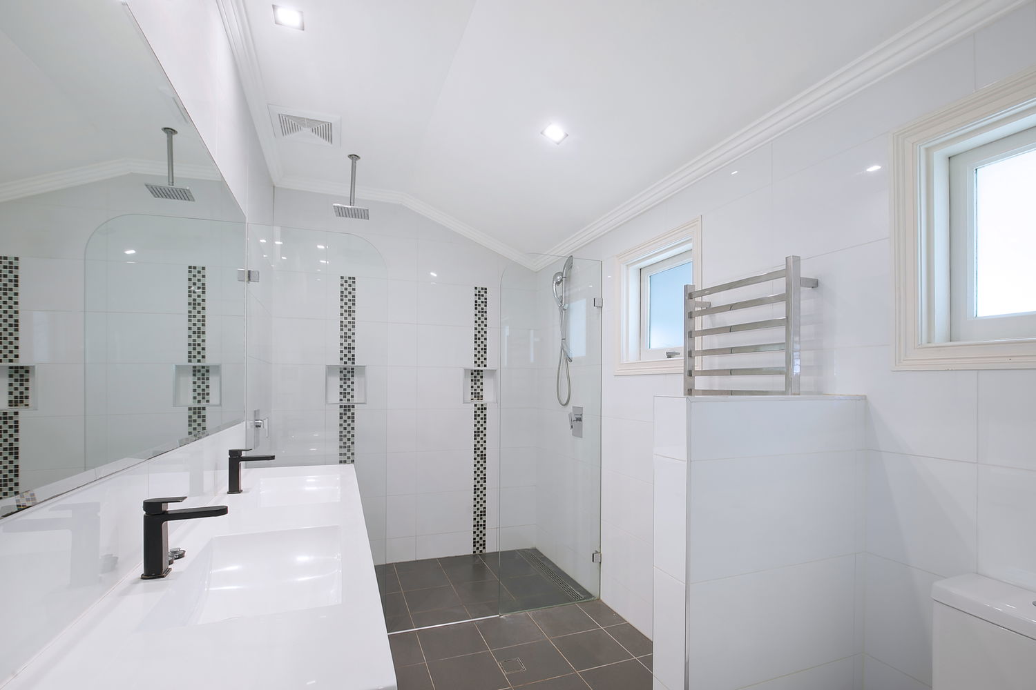 # Ensuite with single shower cavity, double basin and ample storage to vanity.
