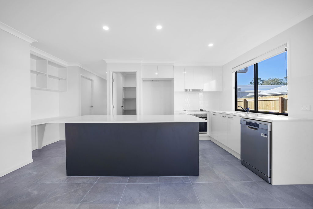 # Large Spacious Kitchen complete with quality stainless steel appliances inclusive of dishwasher, electric stove, oven & rangehood. Ample storage with pantry and island bench also doubling as breakfast bar and walk in pantry.
