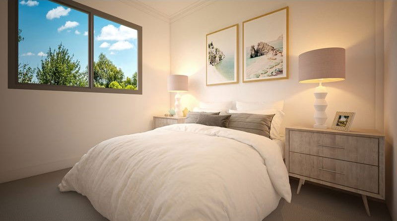 # Master bedroom with ceiling fan, air-conditioning and walk in wardrobe.