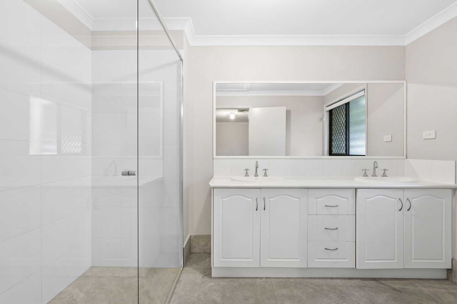 # Master bedroom upstairs has modernised flooring and screens with dual basins