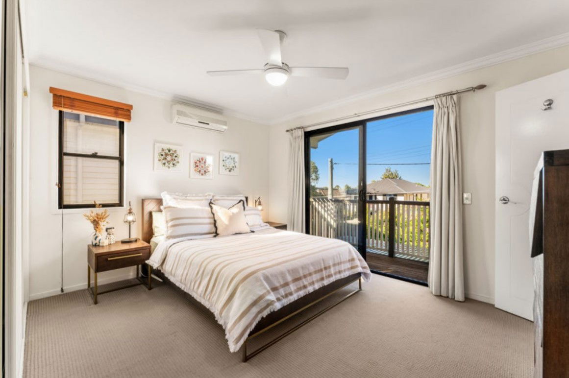 # Master bedroom with private balcony, ceiling fan and air-conditioning