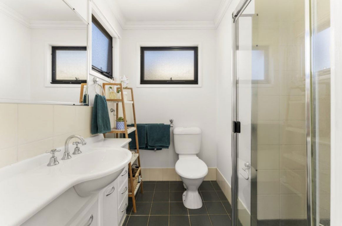 # Ensuite with shower, toilet and storage to vanity