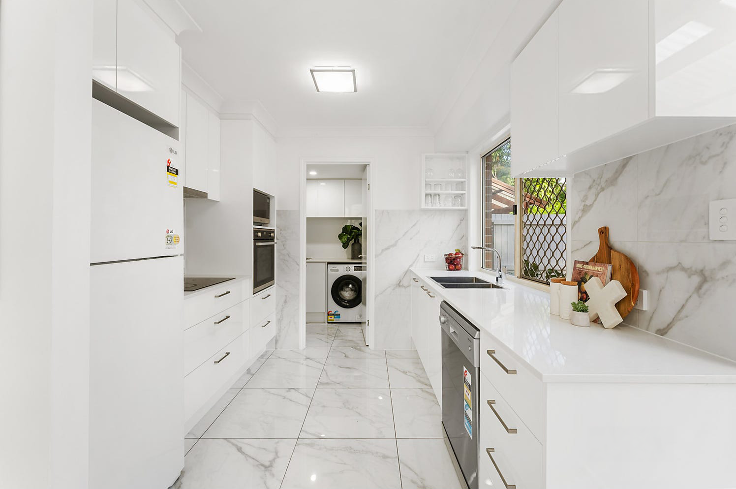 # Spacious kitchen with stone benchtops, ample storage, dishwasher, electric cooktop and oven