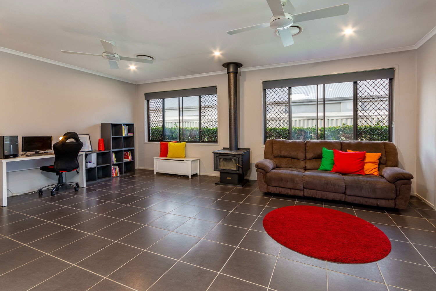 # Separate lounge room with fire place, ceiling fan and ducted air-conditioning and sliding doors leading out to patio
