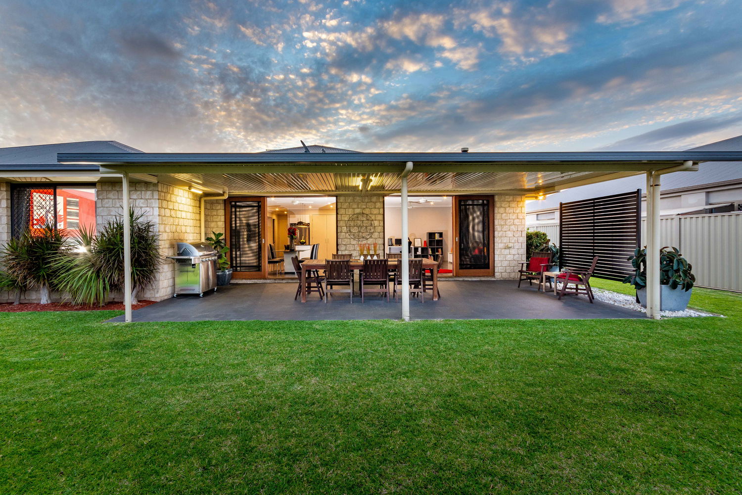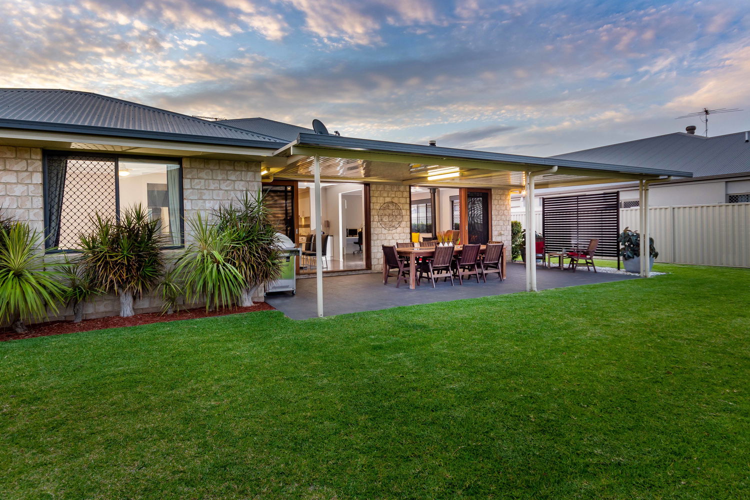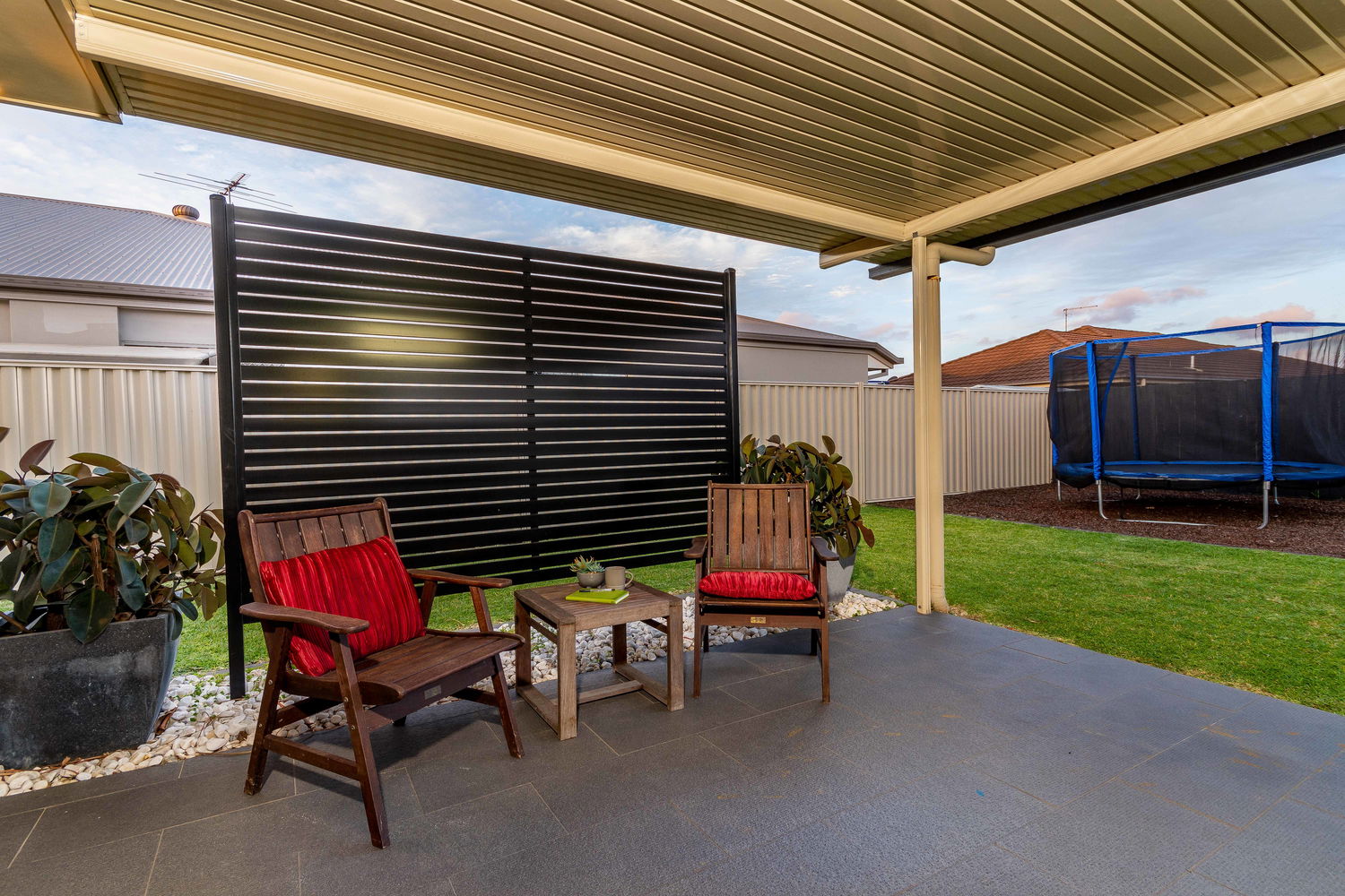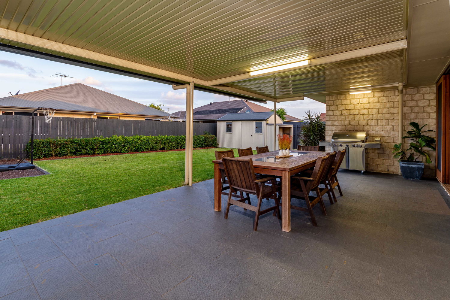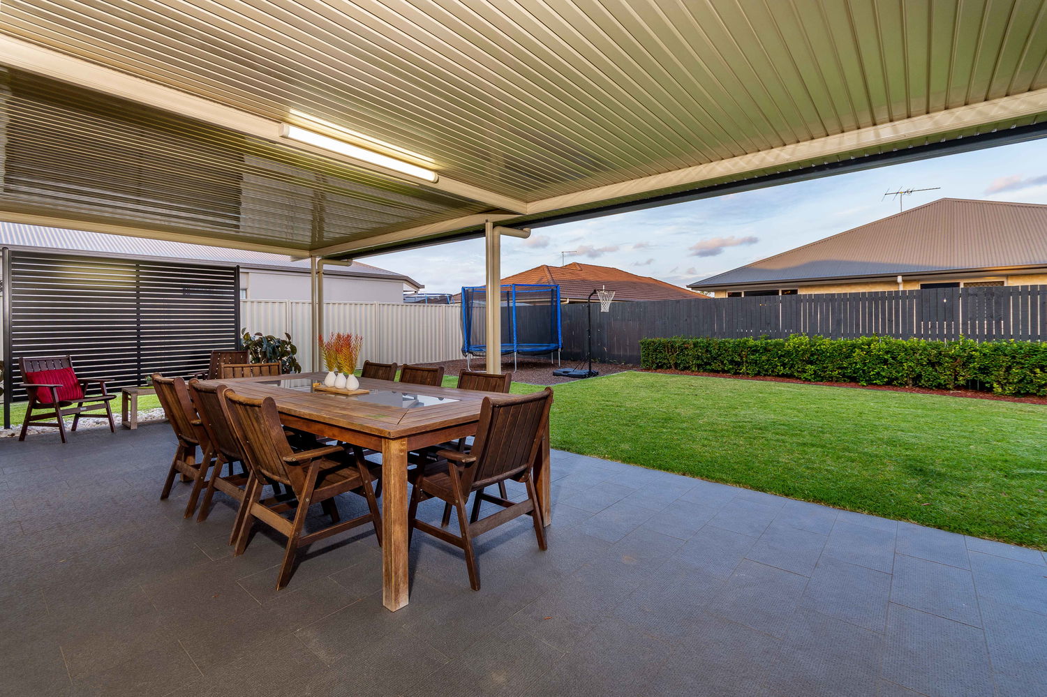 # Covered outdoor entertaining patio overlooking a fully fenced backyard