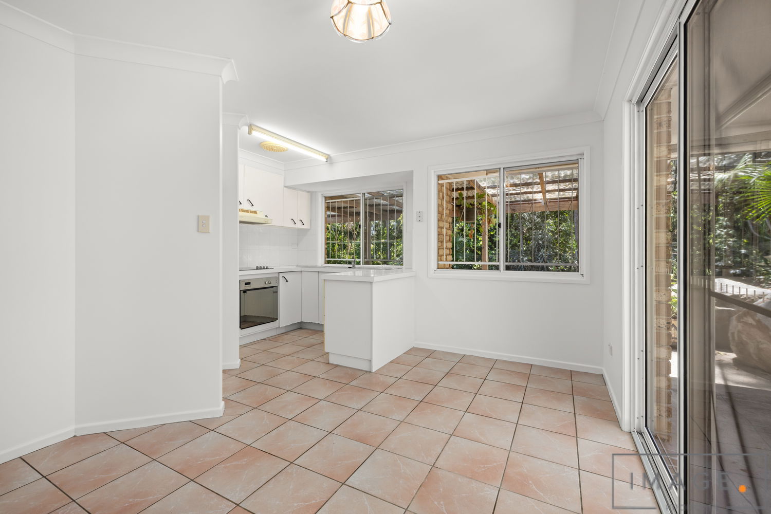 # Functional kitchen with under-bench oven, cooktop, breakfast bench and dining area