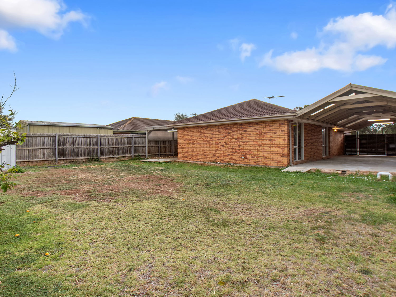 Low-maintenance backyard with large outdoor entertaining space