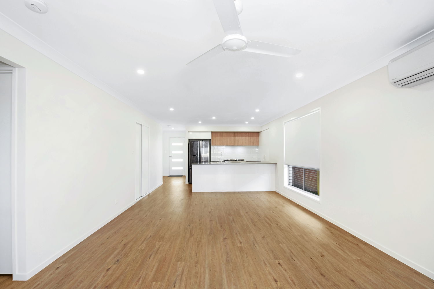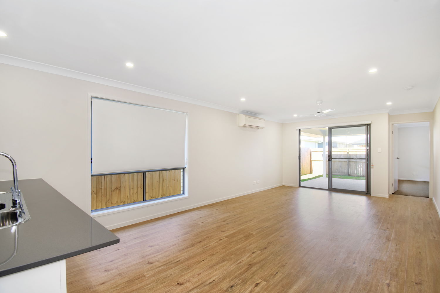 Moving through the property you come across the open plan kitchen, living and dining areas. The kitchen is equipped with modern finishes including electric cooking and a dishwasher. The outdoor area is covered which means you can enjoy being outside all year round.