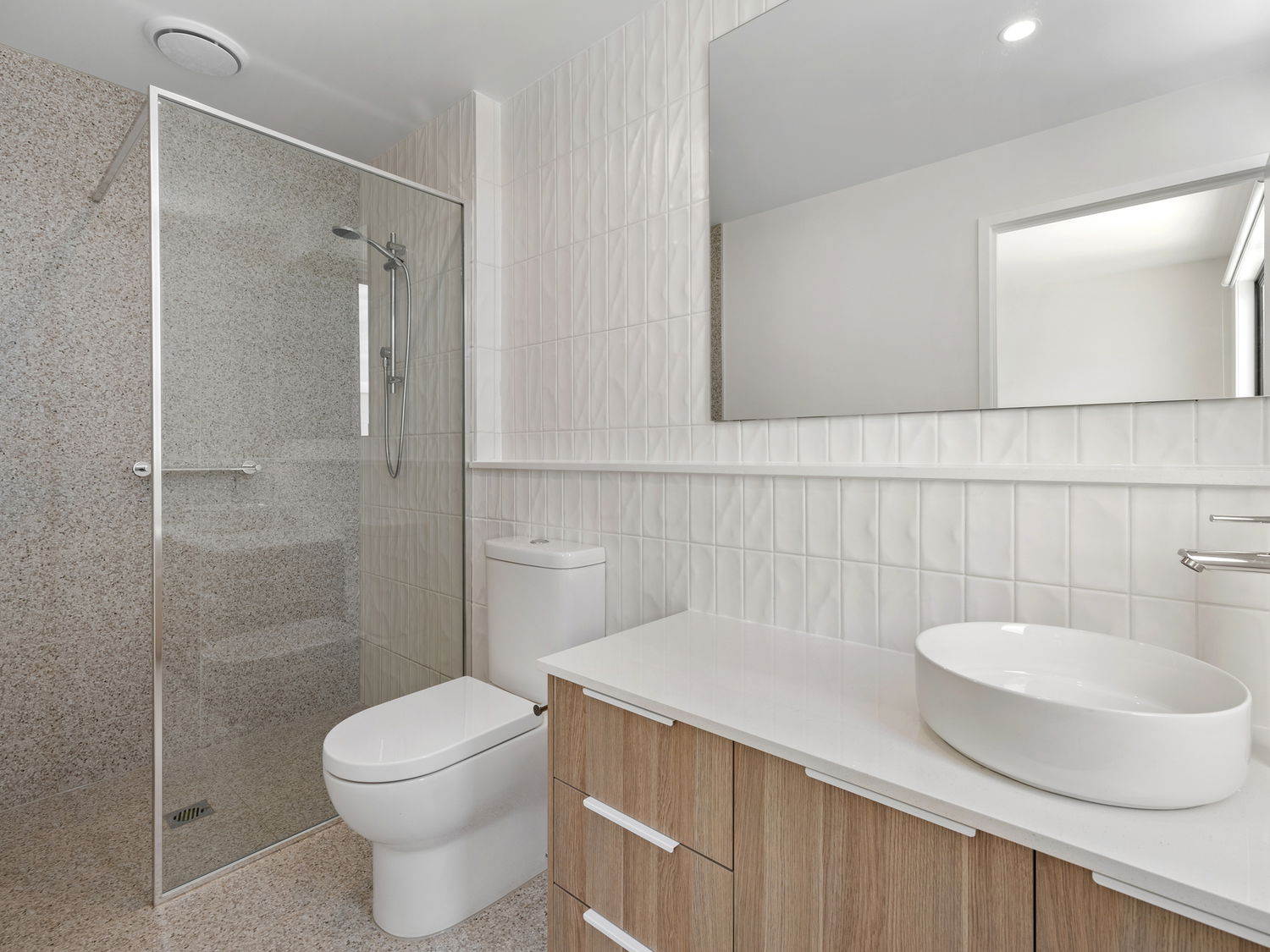 The two additional bedrooms, each with mirrored built-in robes, share a fully equipped central bathroom featuring a spacious double walk-in shower. There’s also extra storage, including a linen cupboard at the entrance and under-stair storage. Added features include a study nook with built-in storage and desk, along with a concrete courtyard area leading to the double remote garage.