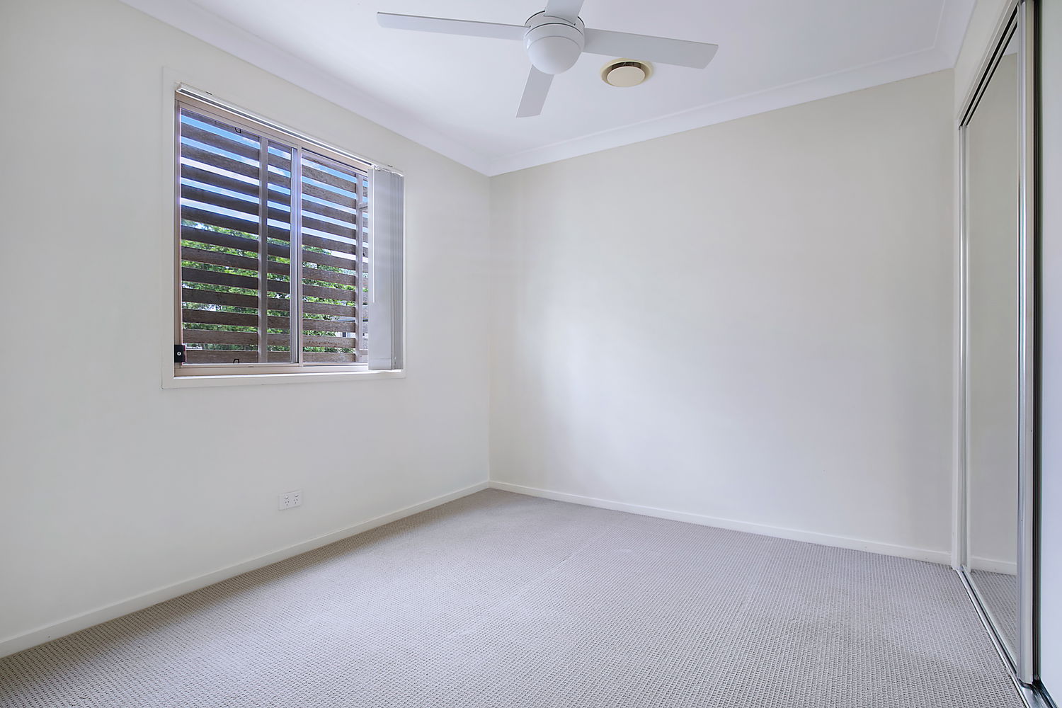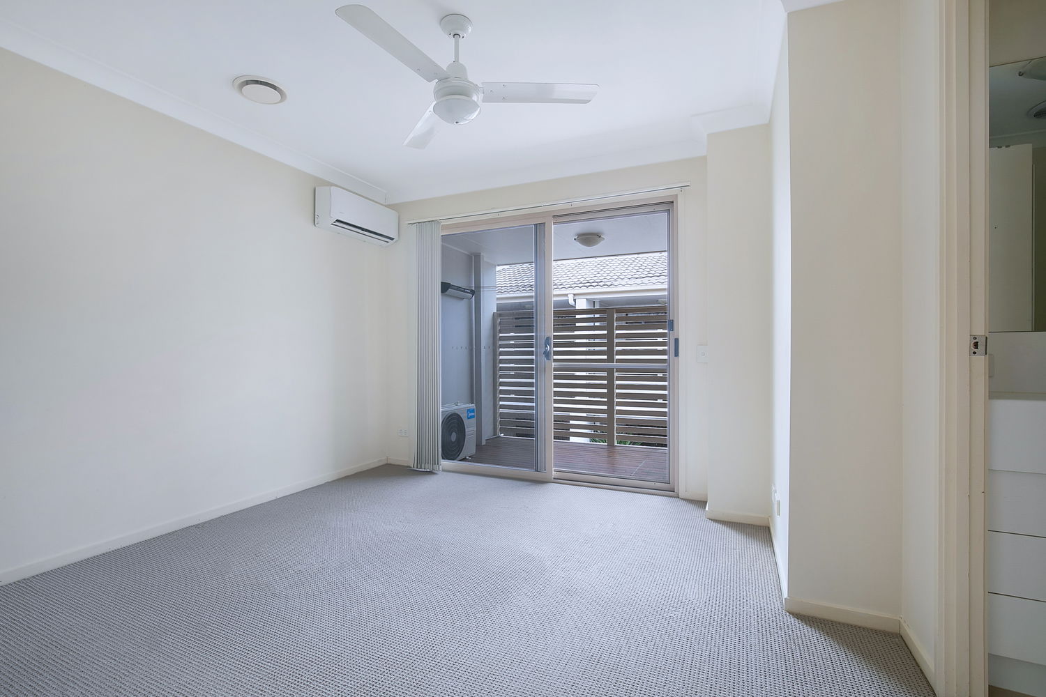 # Master bedroom with split system air conditioning, walk in wardrobe and ceiling fan.