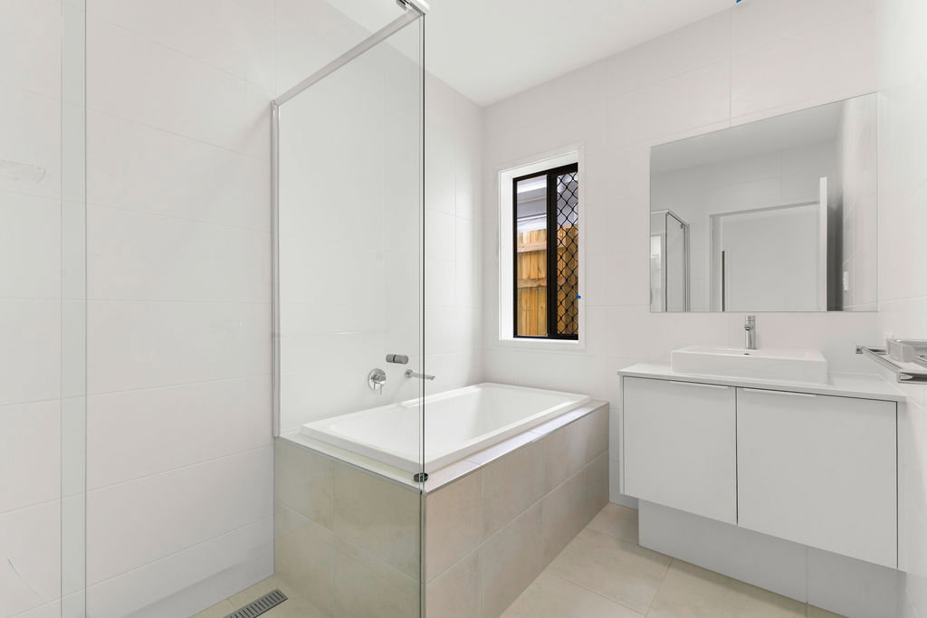 – Family bathroom with bath tub, shower and storage to vanity