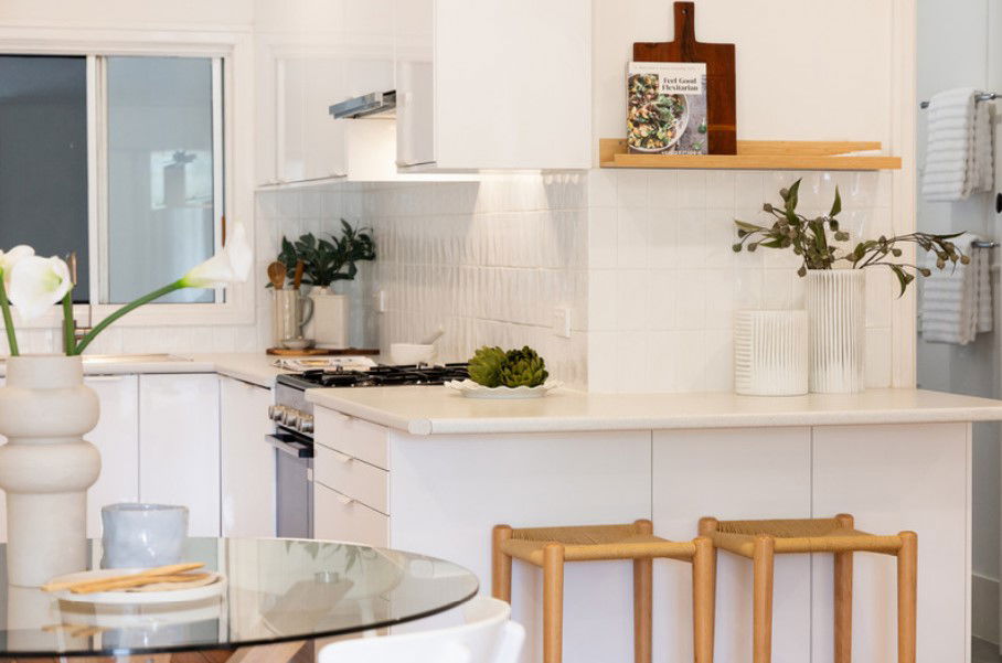 # Stunning kitchen features sleek cabinetry, built-in dishwasher, quality appliances including a gas cooktop, and ample bench space for meal prep or casual dining. A breakfast bar has also been added, creating the perfect spot for morning coffees or relaxed meals with family and friends.