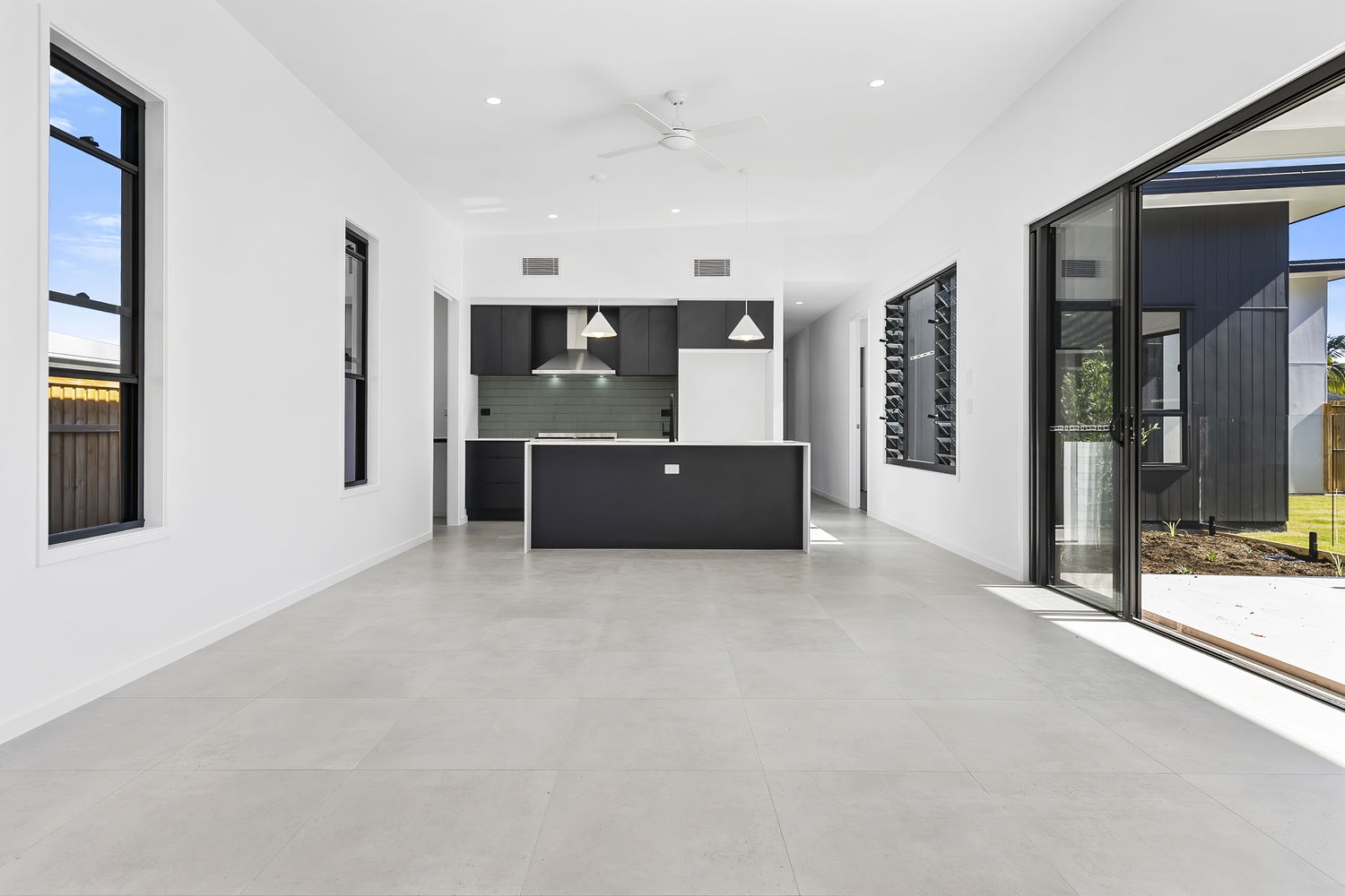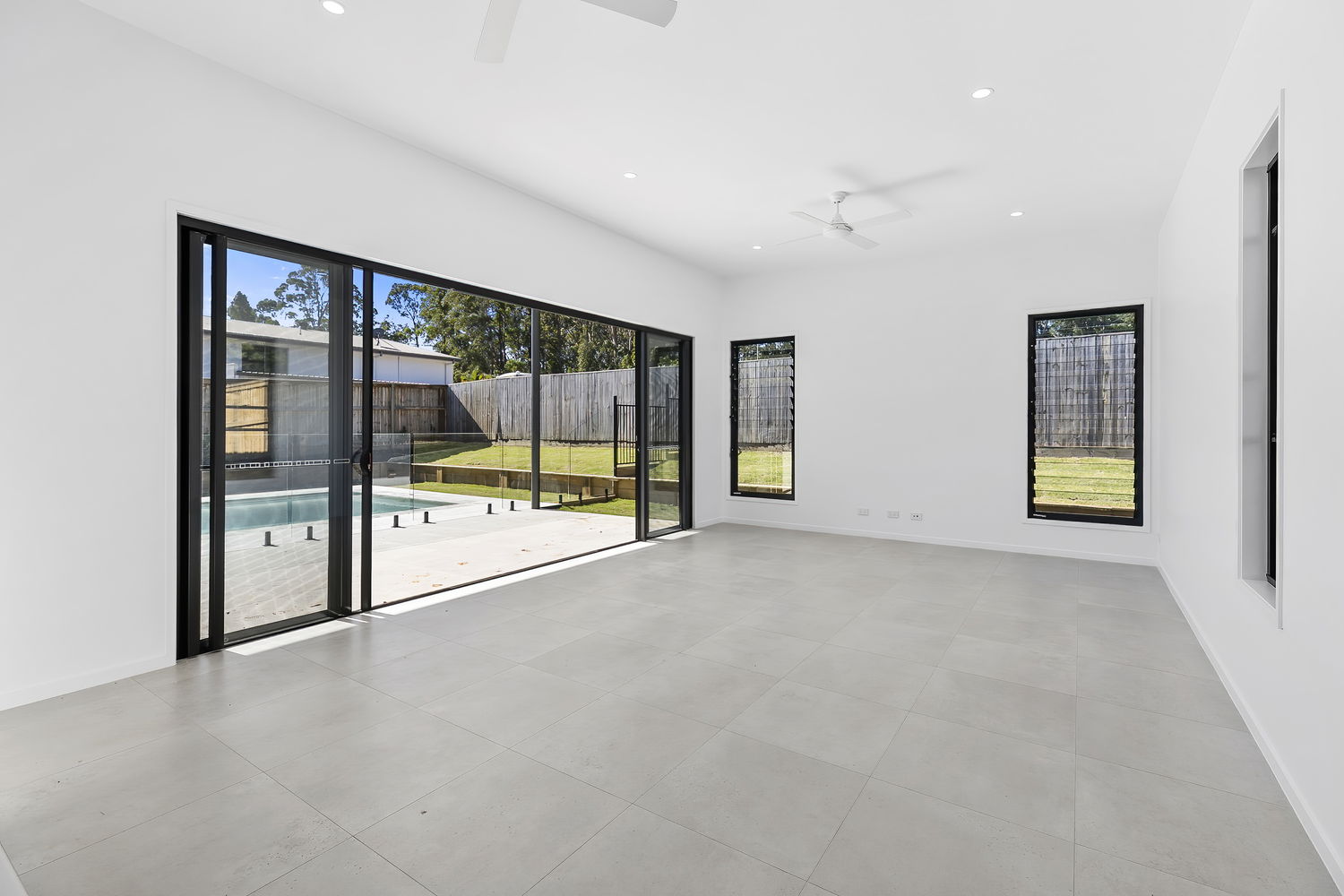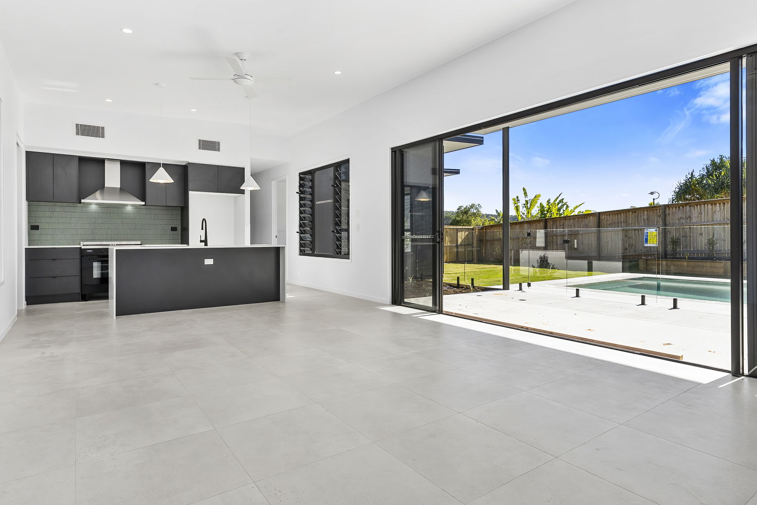 # Open plan living and dining areas with direct access to outdoor entertaining area overlooking the pool and outdoor area