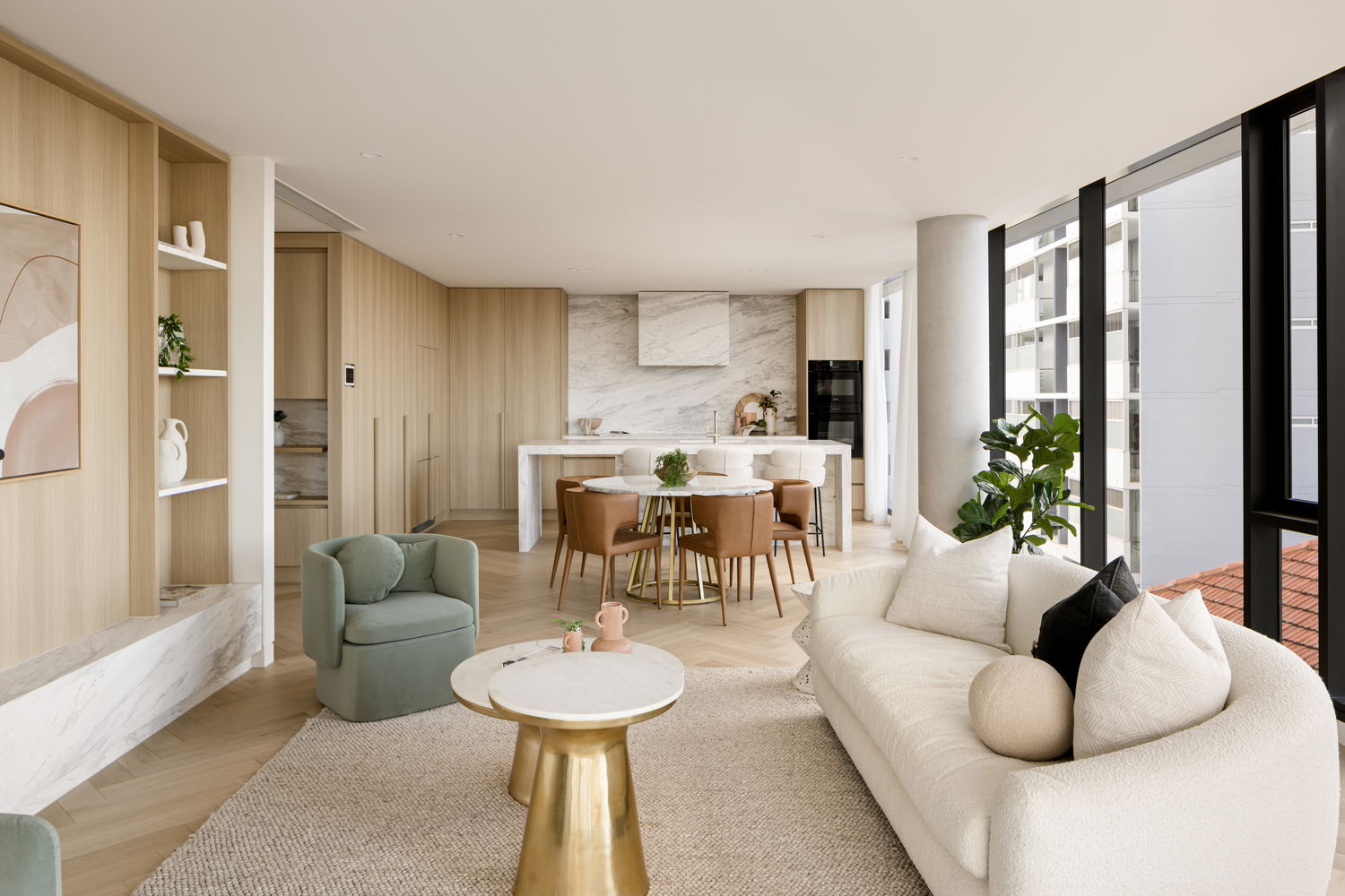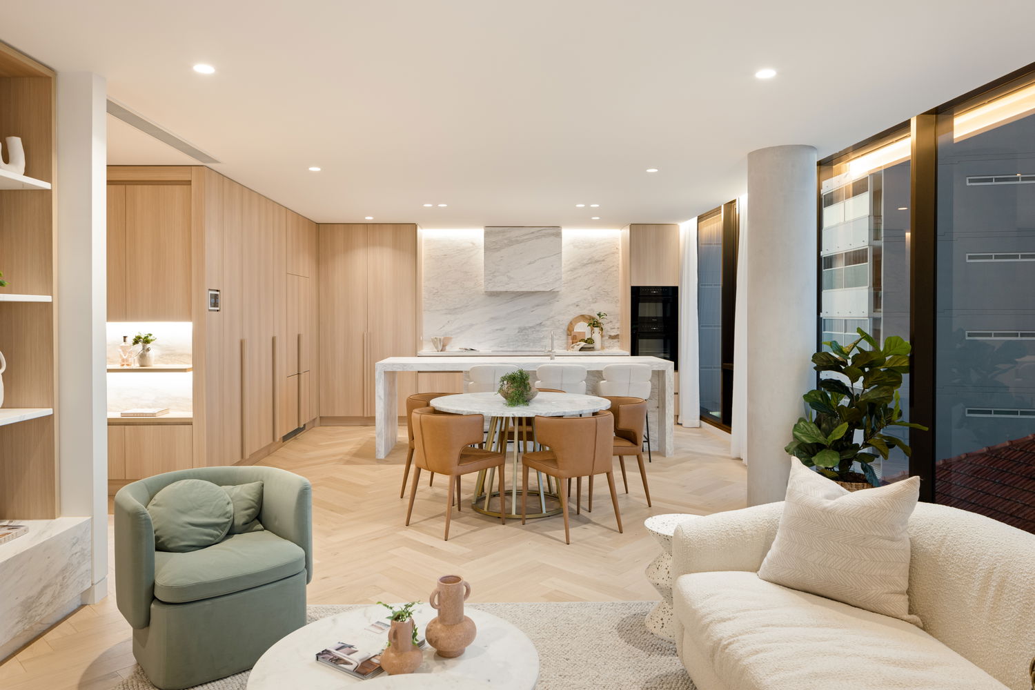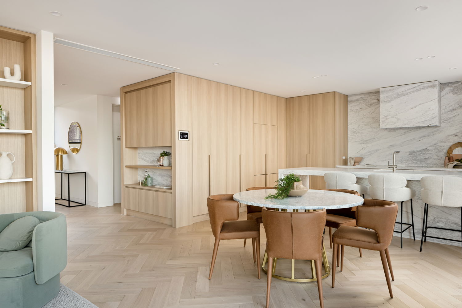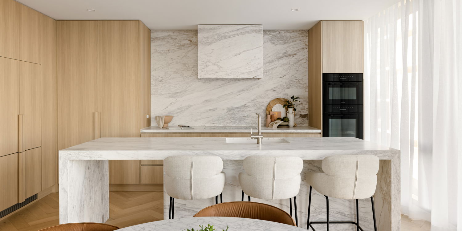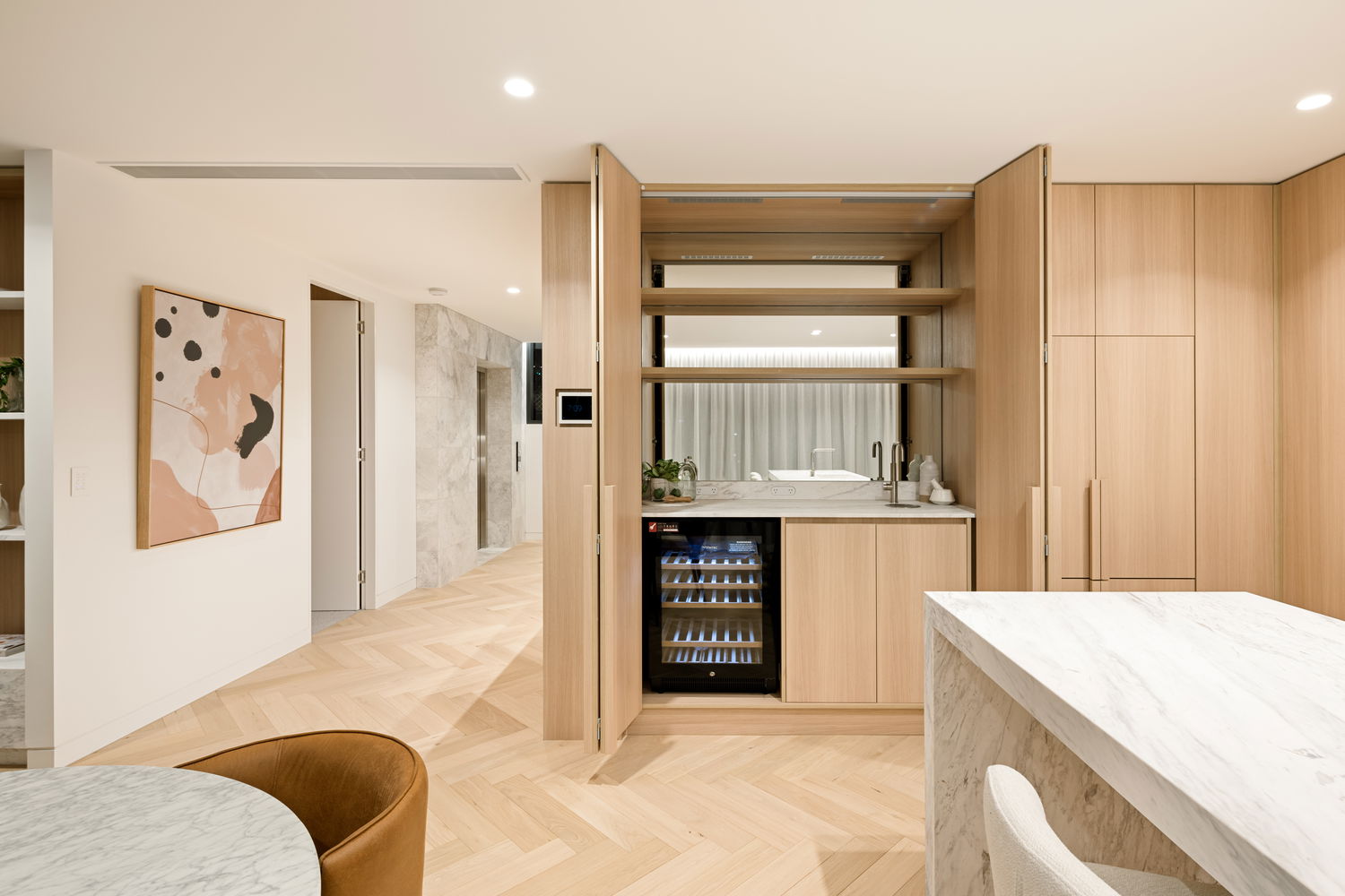 # Chef’s kitchen complete with; Miele series 7 appliances, induction cooktop, two ovens, dishwasher, wine fridge, ZIP tap for filtered still and sparkling water integrated fridge and marble benchtops and splashback
