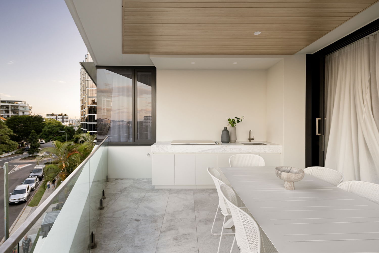 #- Entertainers balcony with uninterrupted river views, built-in-BBQ and sink