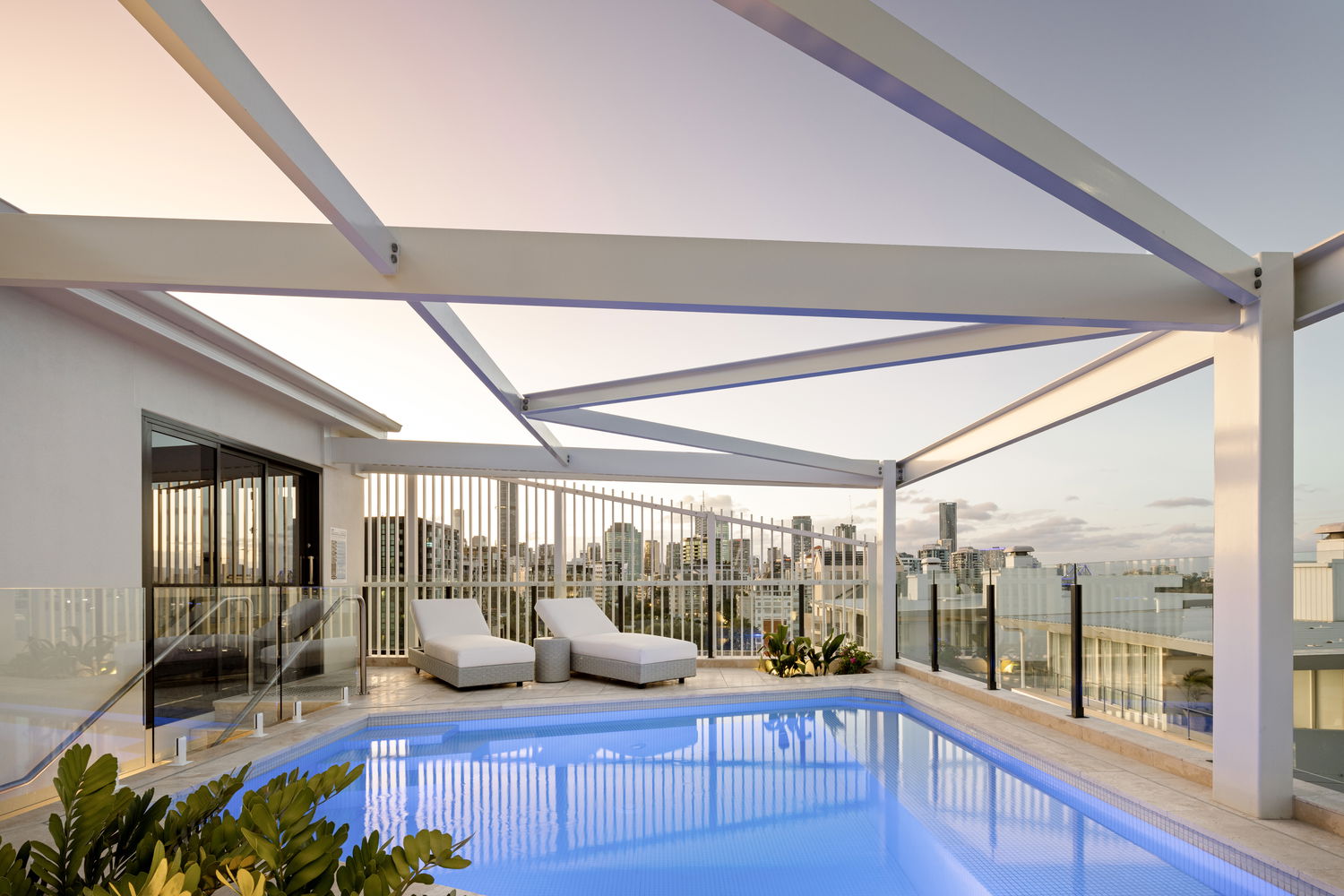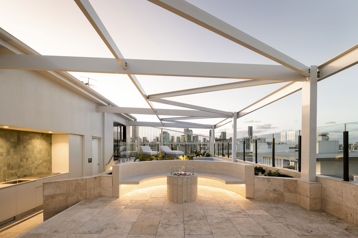 # Rooftop retreat with panoramic river and city views plus electric retractable roof
