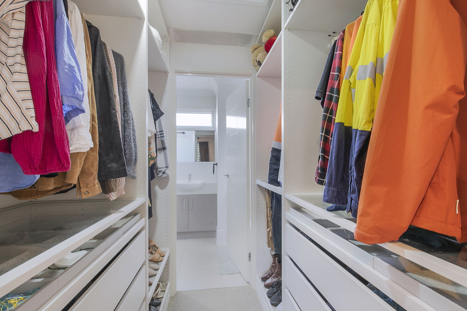 # Main bedroom with air-conditioning, recently updated walk in wardrobe with storage solutions and private ensuite