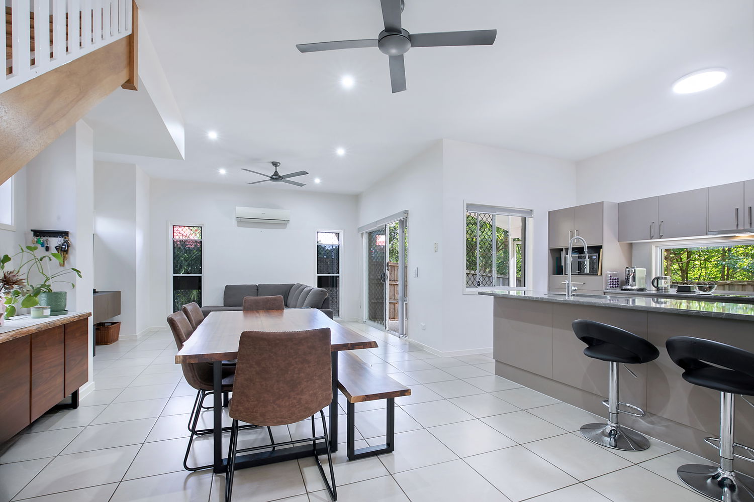 # Open plan living and dining with air-conditioning and opening out to your court yard for alfresco entertainment