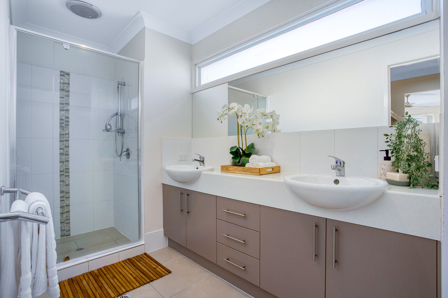 # Private ensuite with shower, double basin, toilet and plenty of storage to vanity.