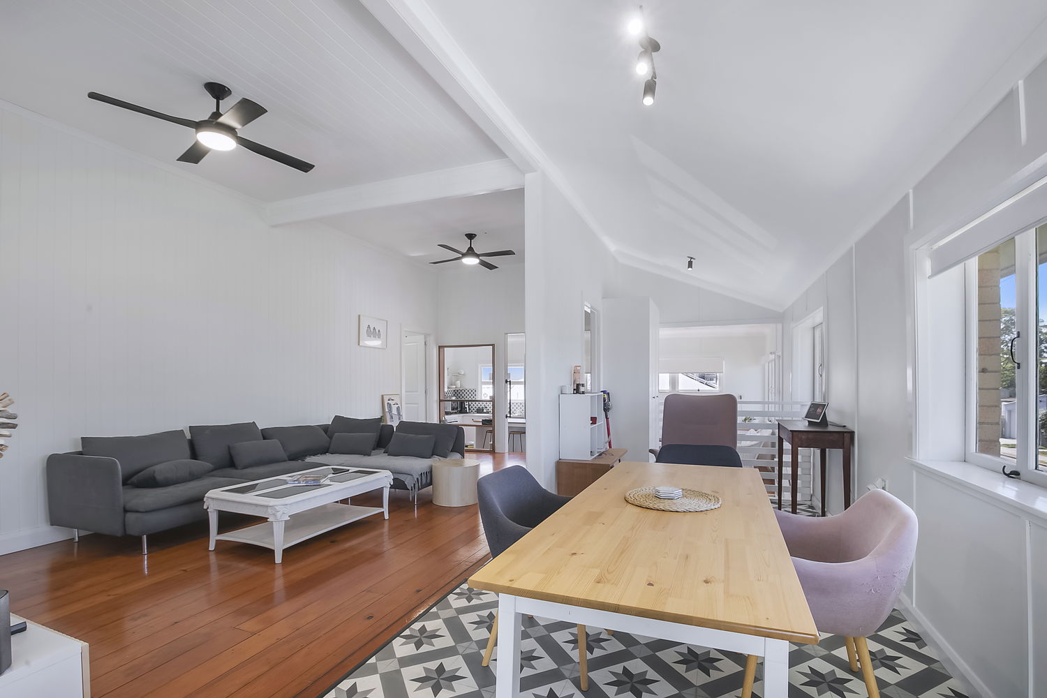 # Large open plan living and dining on entry from the front stairs with air-conditioning and views of Margate beach