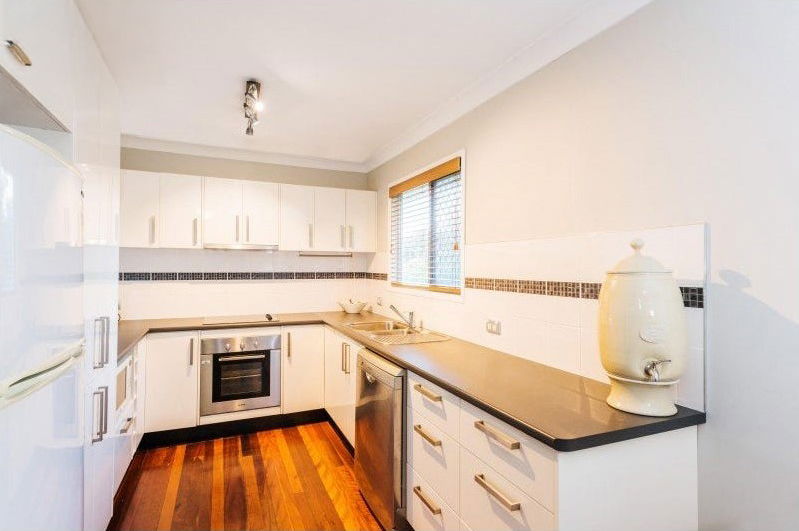 # Sleek kitchen with ample bench and cupboard space, modern appliances including a dishwasher