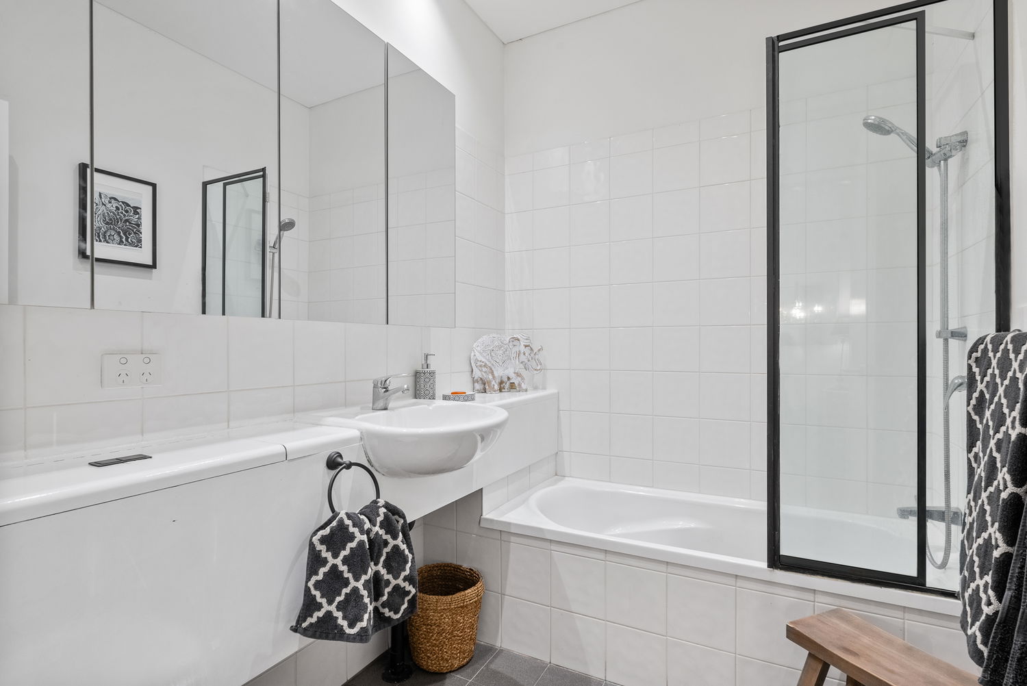 #Modern Bathrooms & Laundry: The master ensuite and a contemporary second bathroom are fitted with mirrored storage, a glass shower, and a bath. A European laundry adds convenience for everyday living.