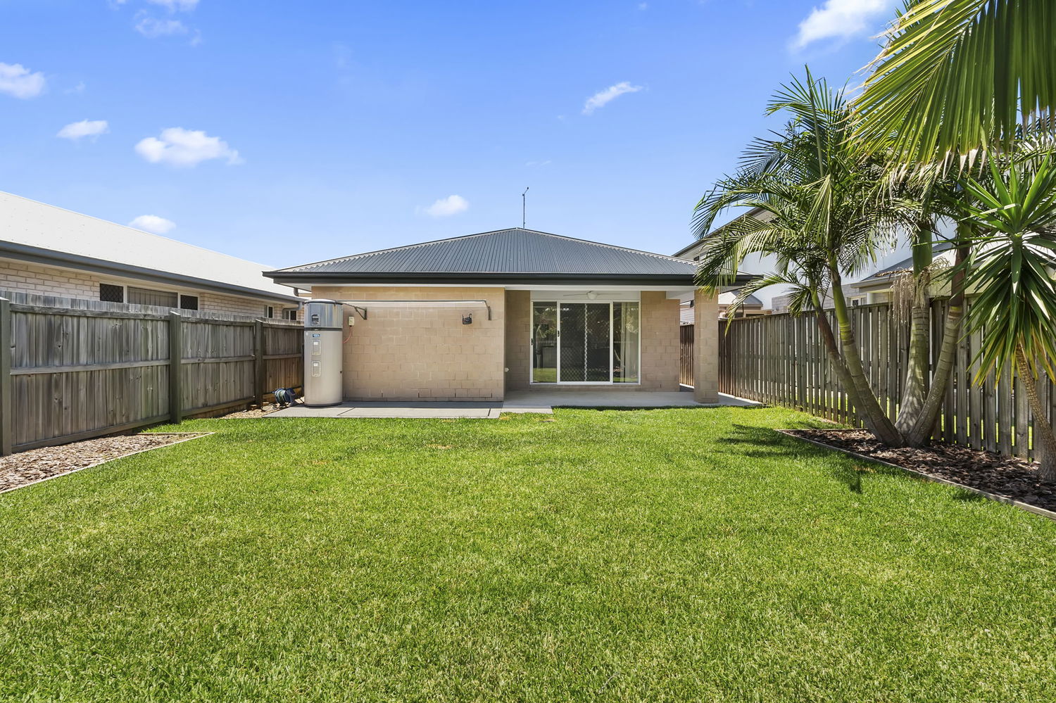 # Fully turfed, low maintenance back yard with small garden
