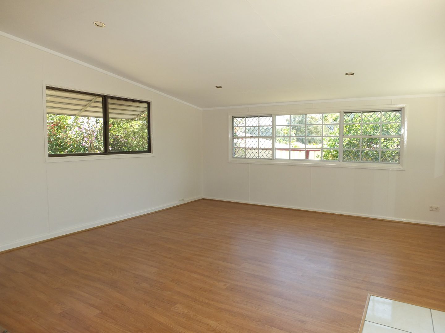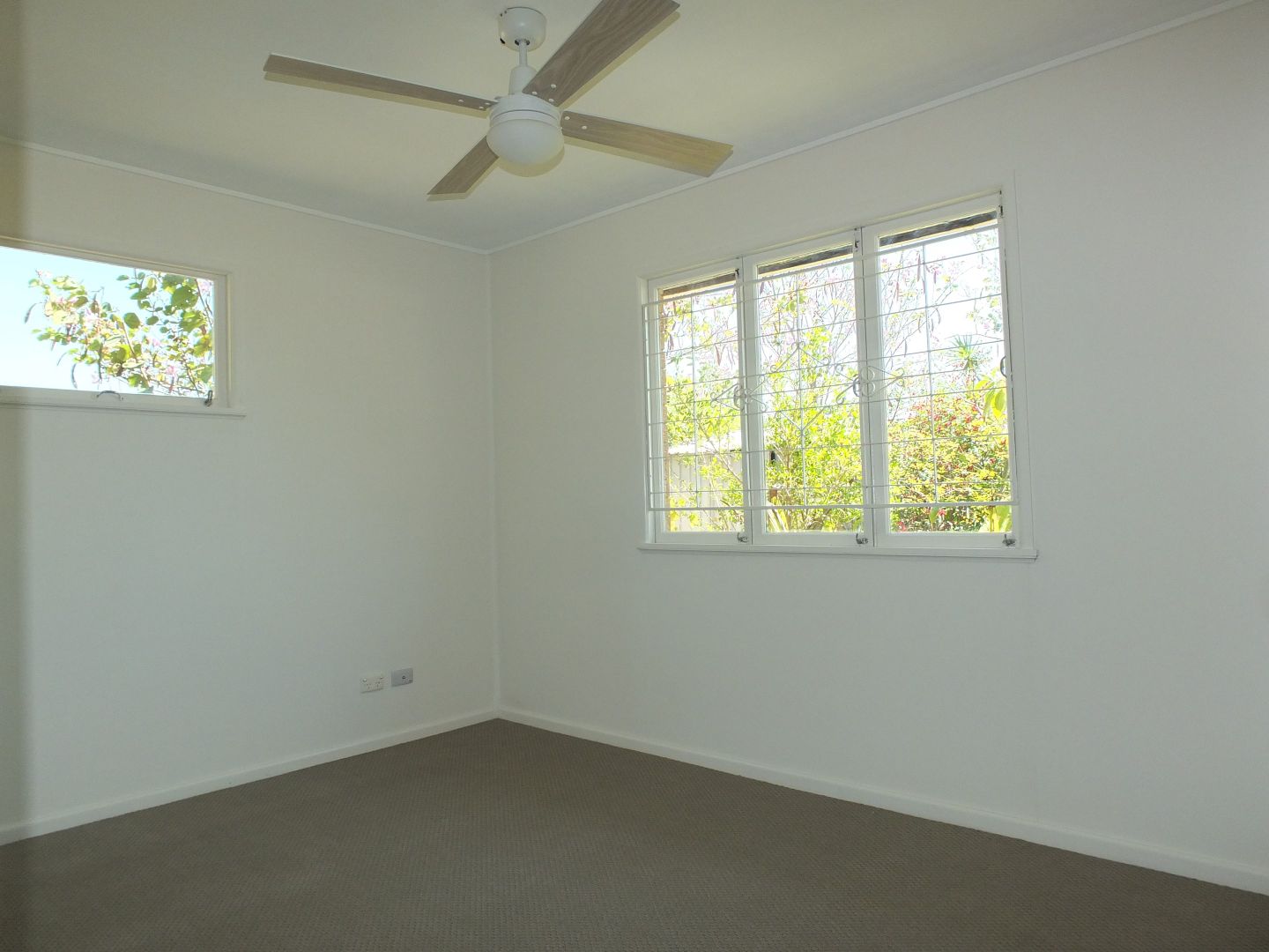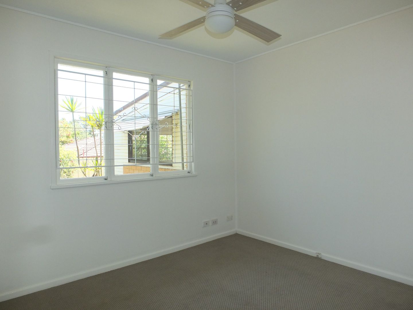 # THREE bedrooms, the main with BUILT INS, carpeted and FANS