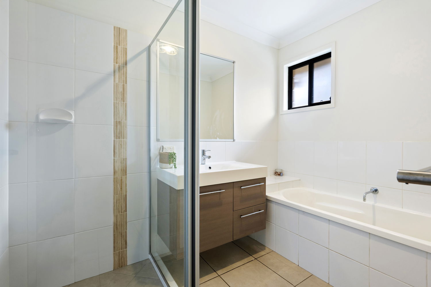 – Main bathroom with shower, separate bathtub and storage to vanity