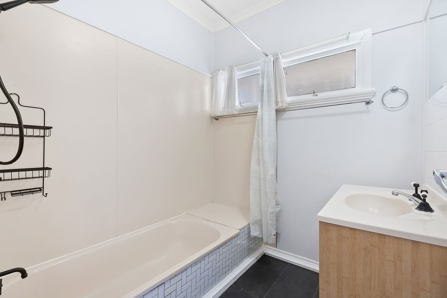 # Main bathroom with shower over bath and storage to vanity