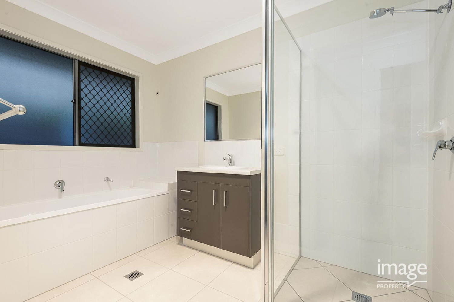 # Emperor sized master bedroom. Massive built-in-robe in fitting with the size of the room and a stunning private en-suite. Ceiling fans and air conditioning for your comfort, roller blinds for your privacy, and security screens for your peace of mind.