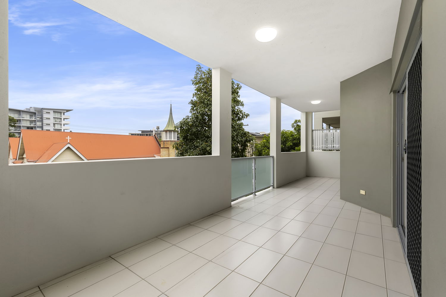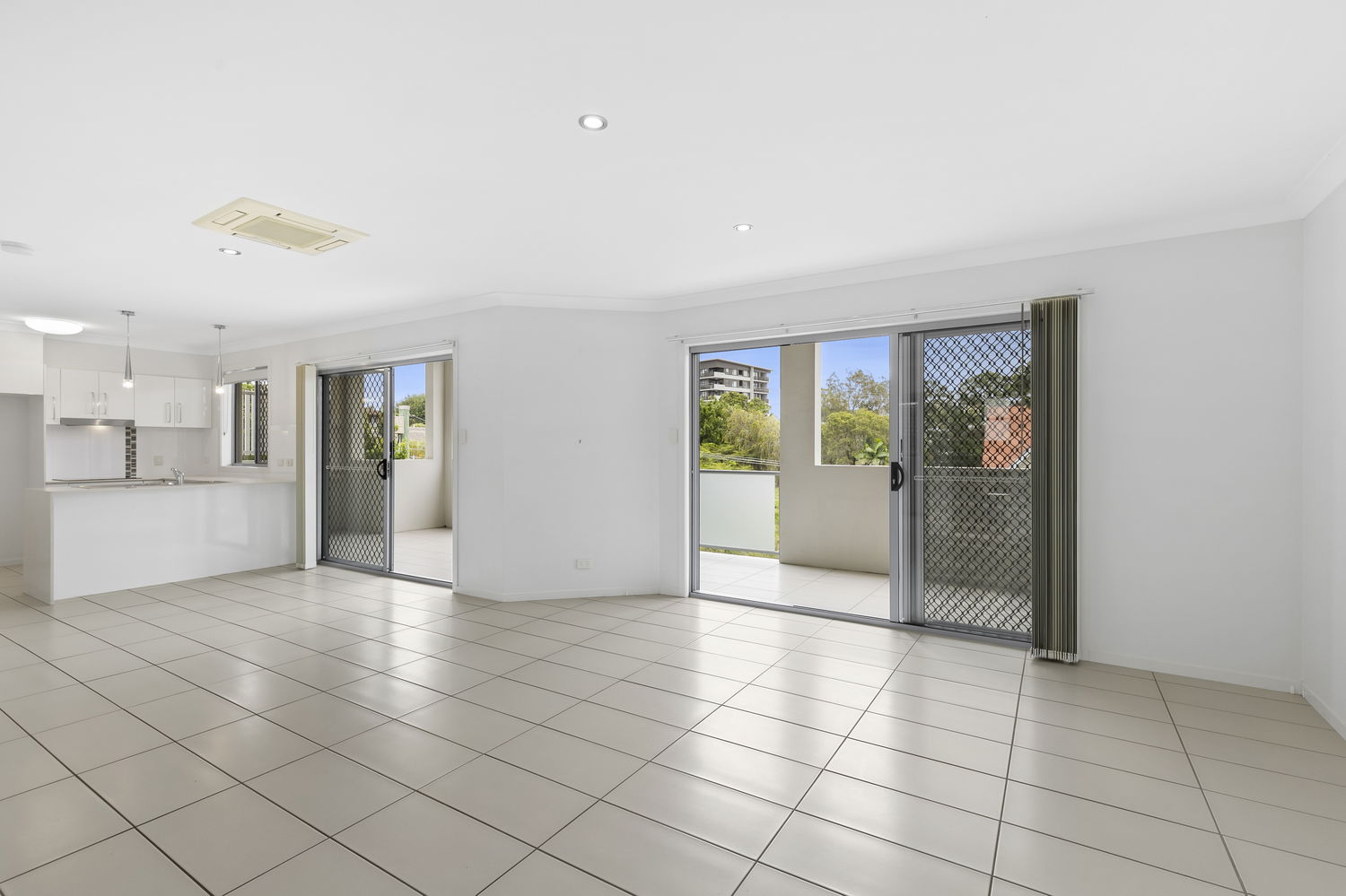 # Tiled open plan living areas leading out to a large balcony perfect for entertaining