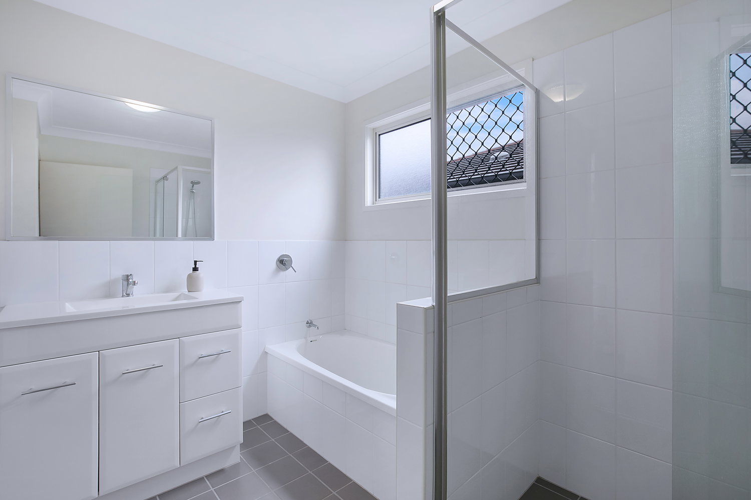 # Ensuite with shower, toilet and storage to vanity