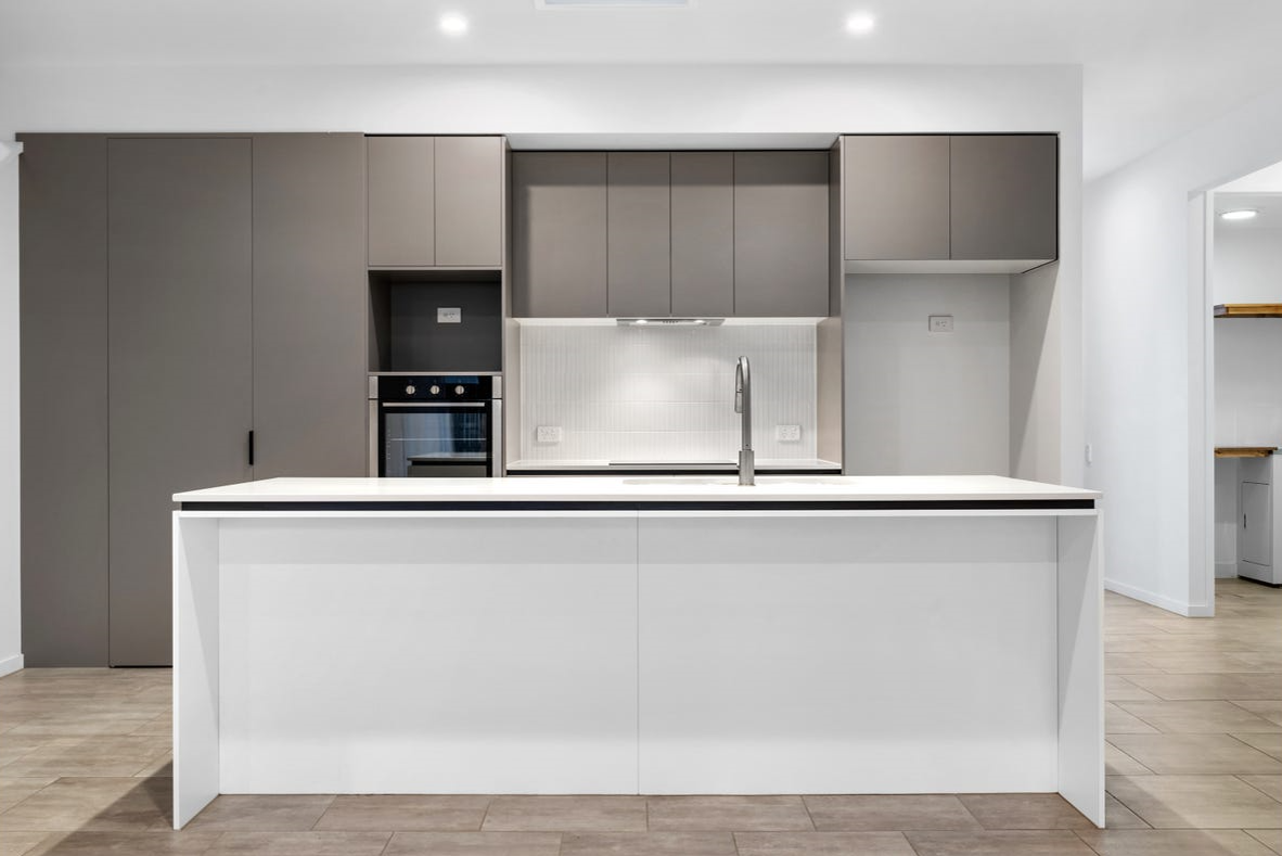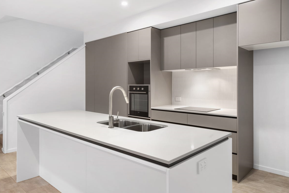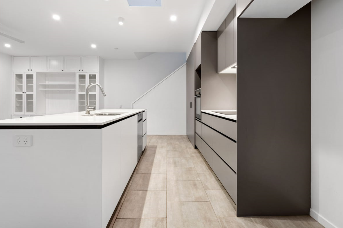 # Modern kitchen with appliances inclusive of dishwasher, rangehood & electric cooking. Large sized fridge cavity, ample bench space and island bench also doubling as a breakfast bar and large pantry space!