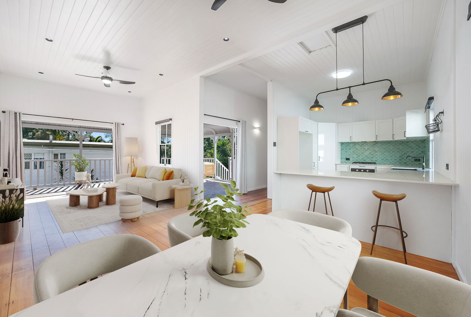 #Renovated character home – blending classic Queenslander charm with modern finishes, including a full wraparound verandah and lush tropical landscaping across a fully usable 857m² block.