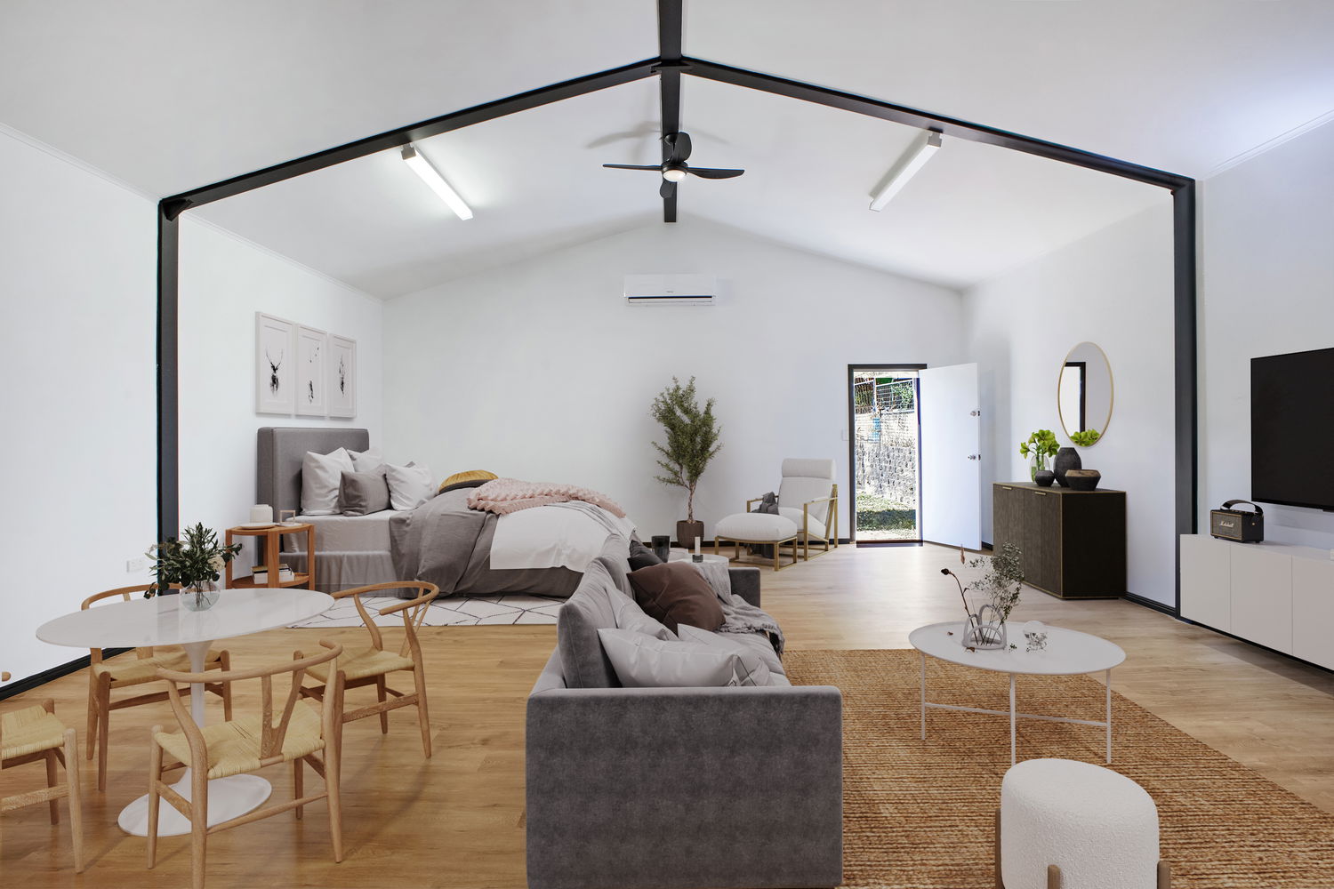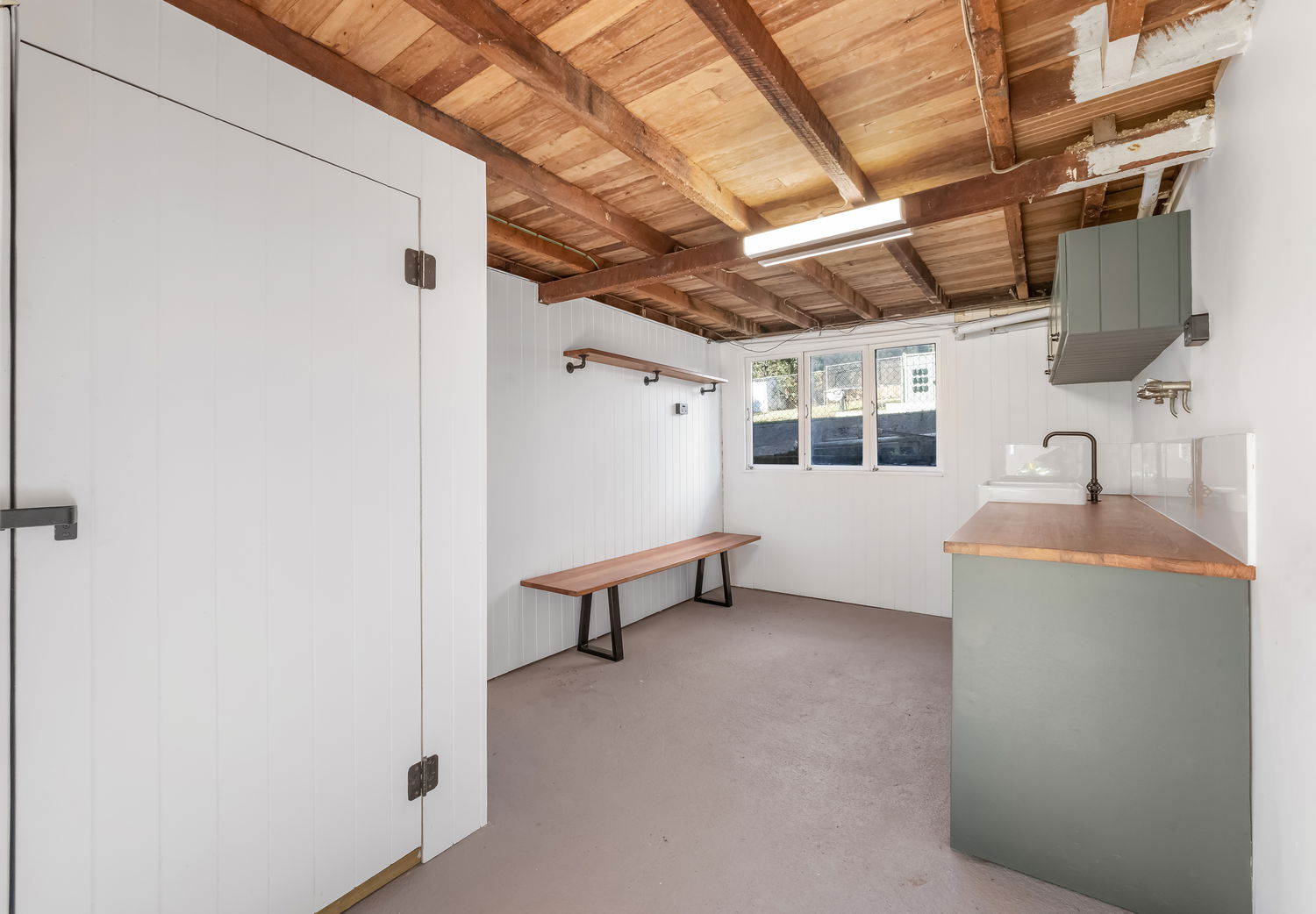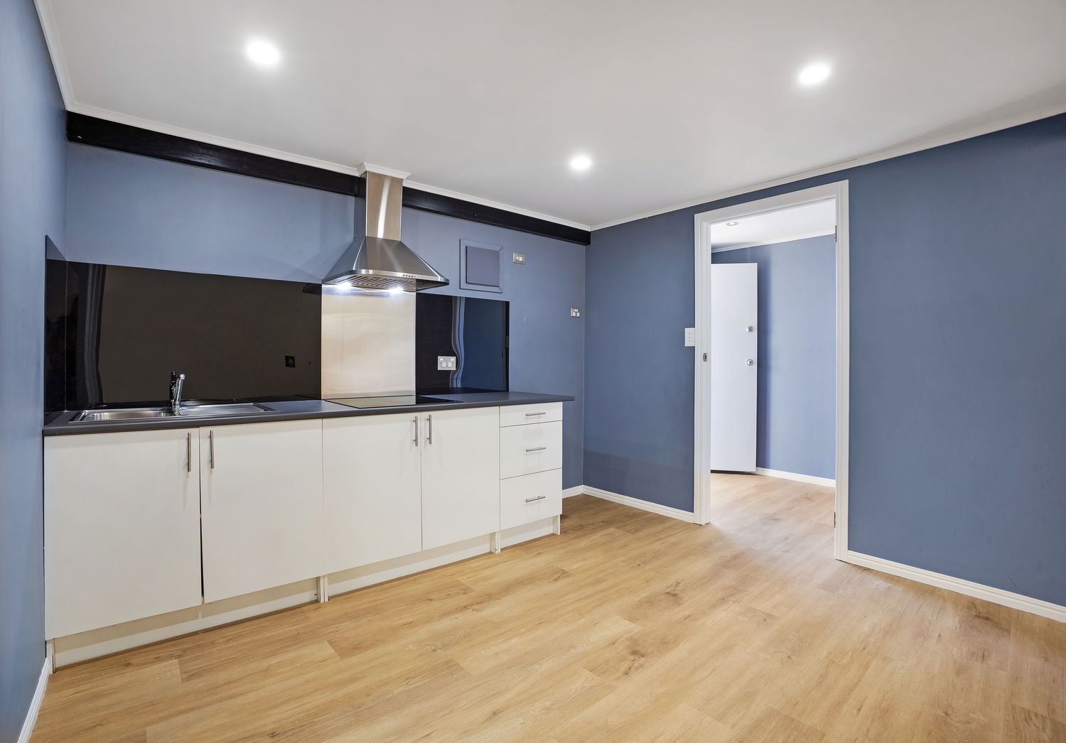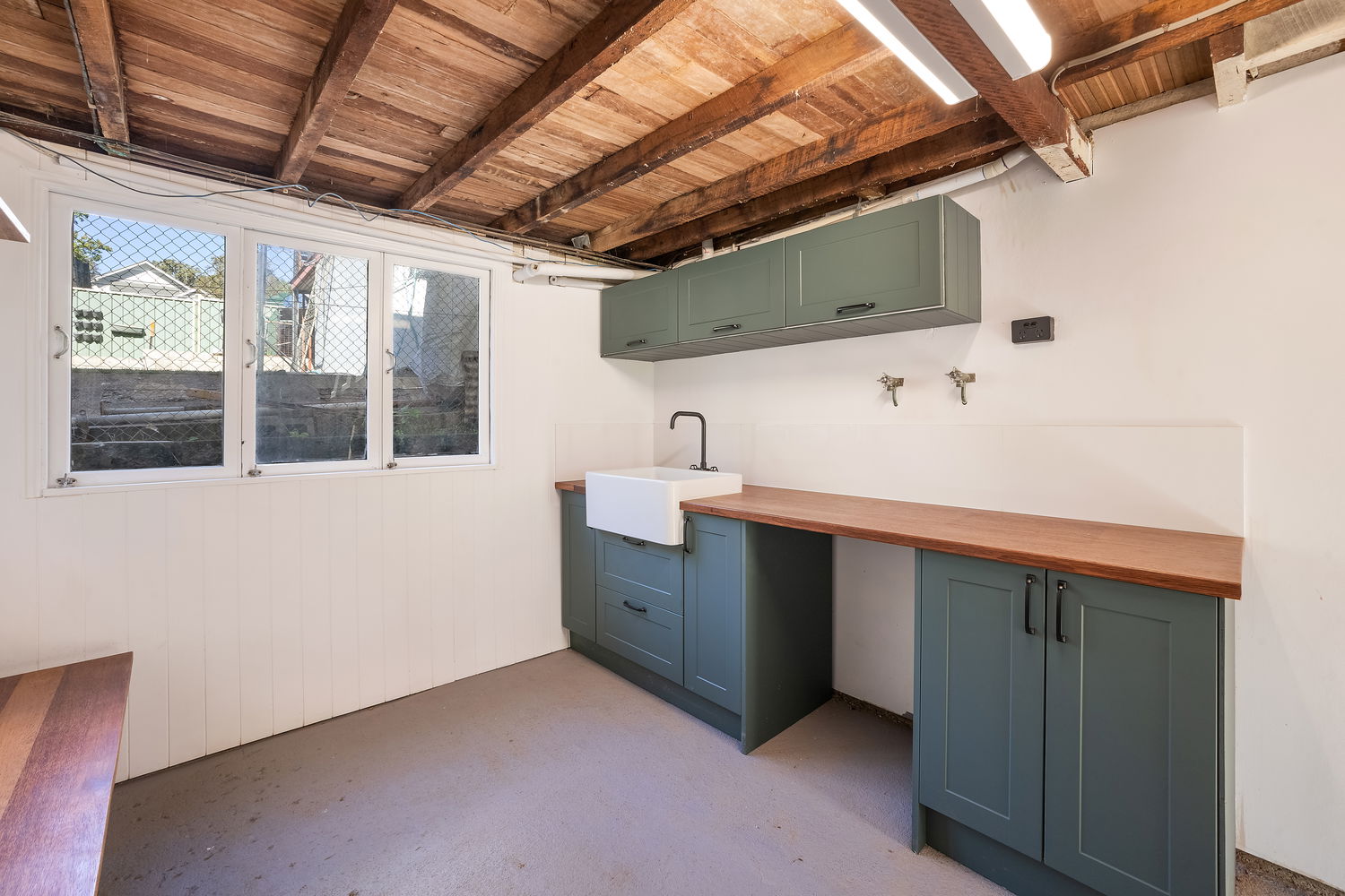#Studio retreat – a self-contained dwelling at the rear, complete with kitchenette (electric cooktop, rangehood), bathroom, air-conditioning, and ceiling fans — ideal for extended family, guests, or a work-from-home setup.