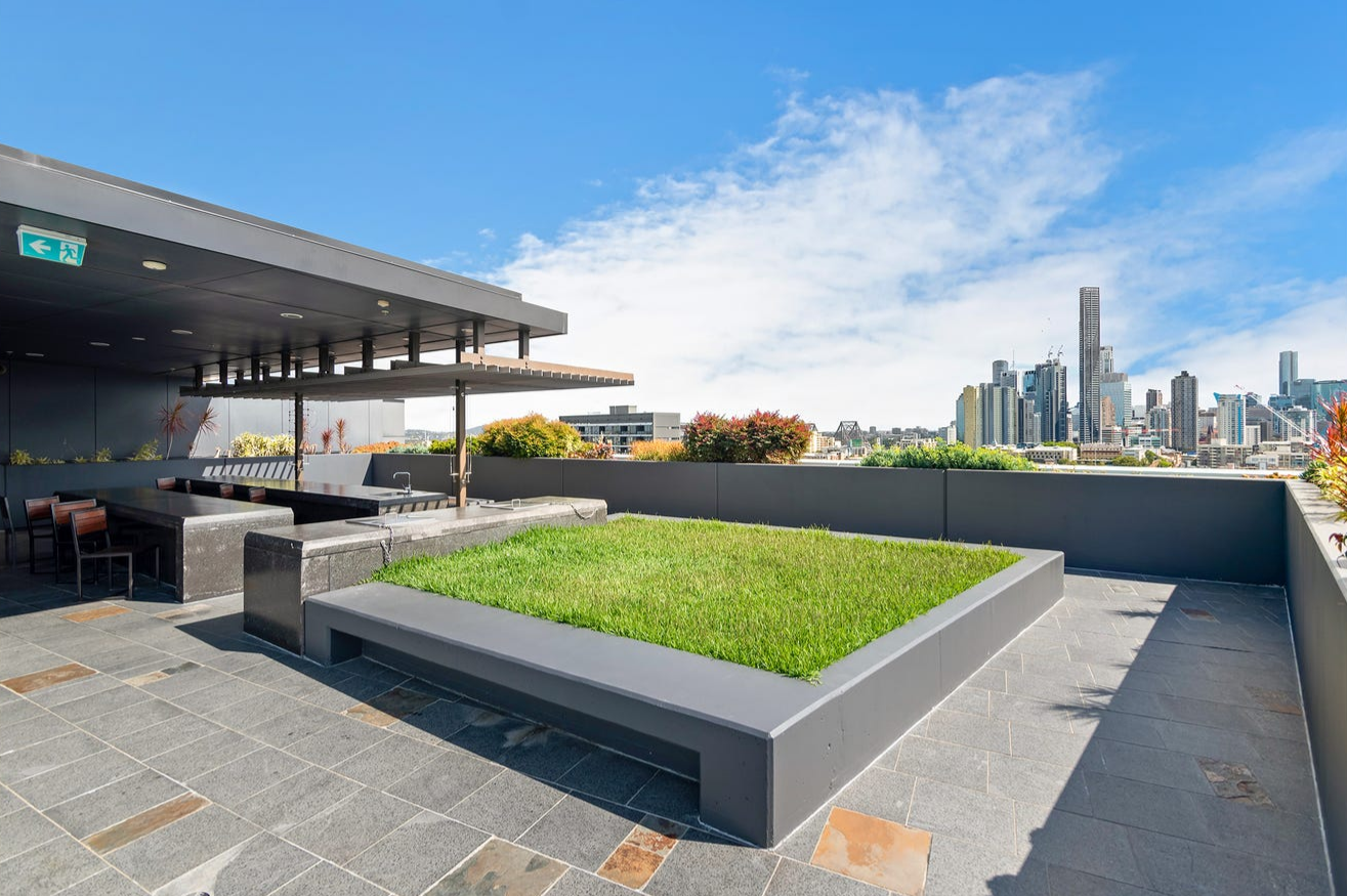# Rooftop resident entertainment facilities including BBQ pavilion and vegetable garden