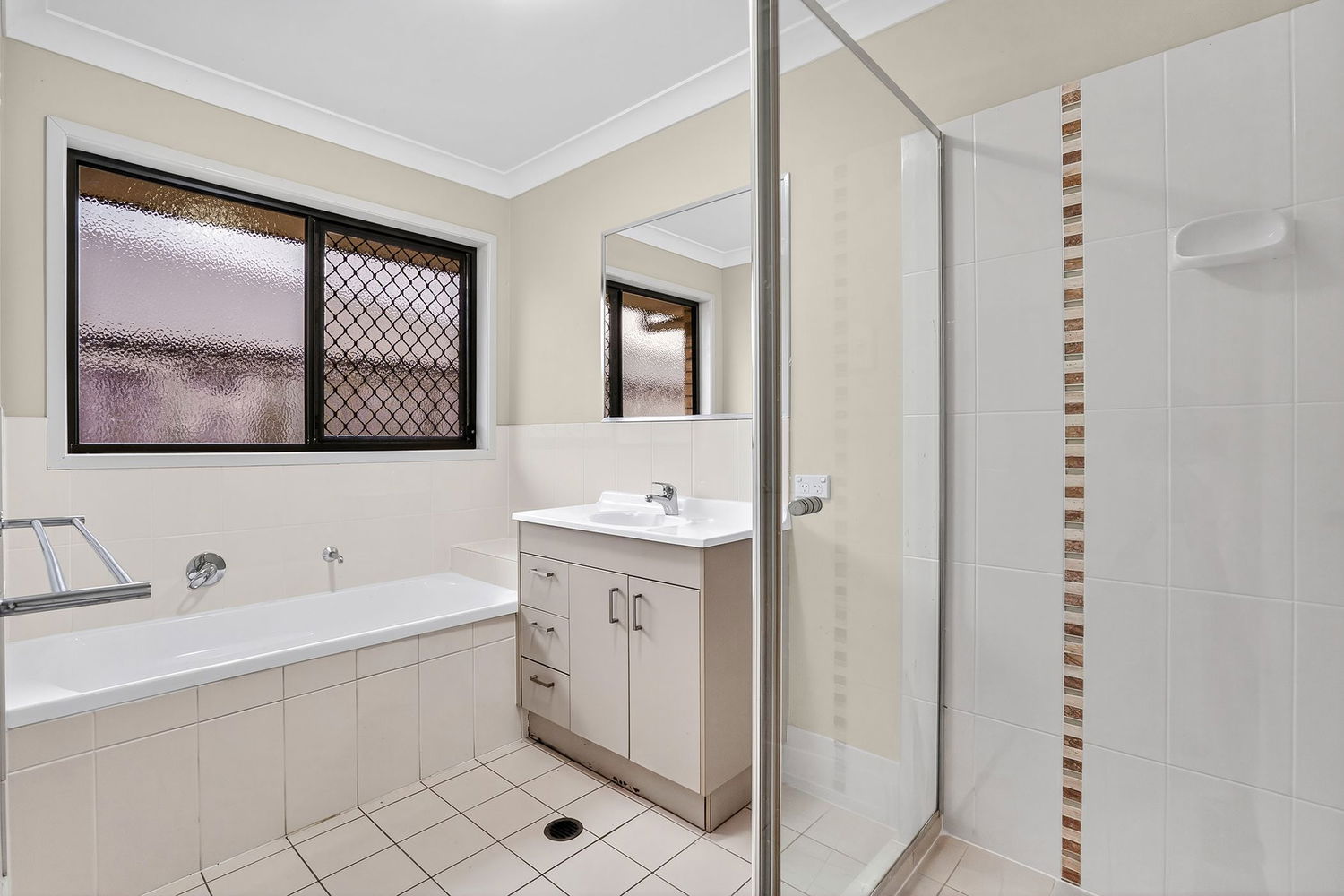 # Main bathroom featuring bathtub, shower and storage to vanity