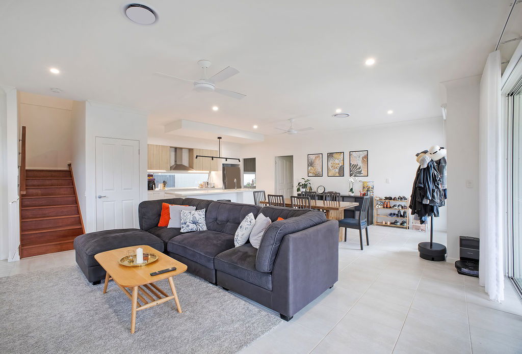 # Spacious open plan living and dining area opening up to stunning undercover entertainers patio, creating the perfect indoor-outdoor entertainment area