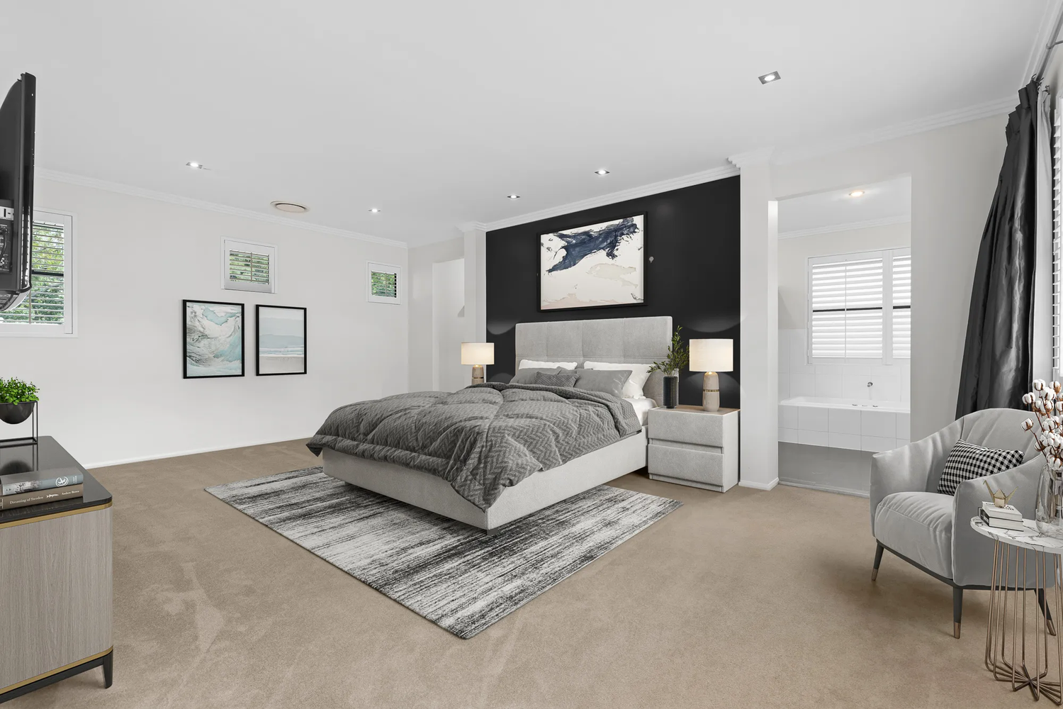# Guest bedroom with ensuite; additional bedrooms with built-ins/walk-in robe